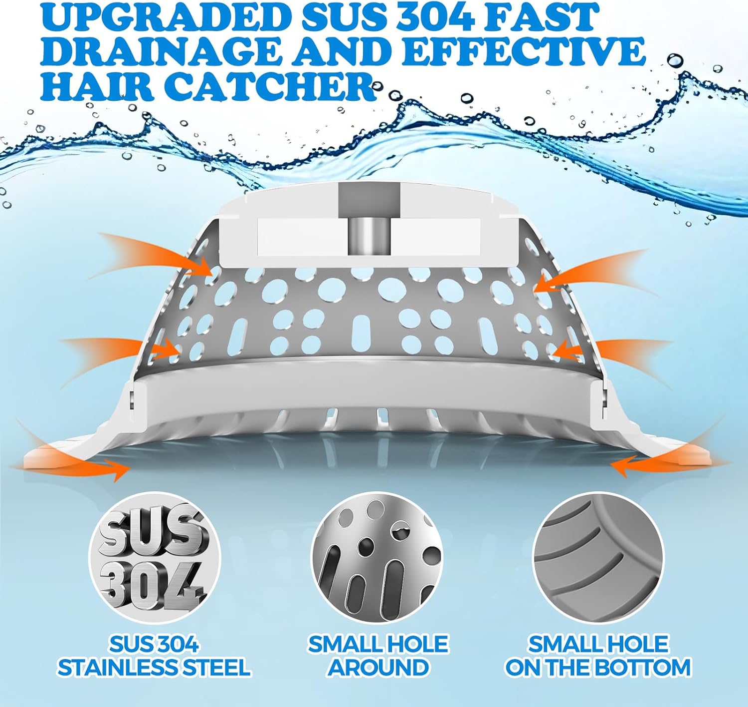 - 【Upgraded SUS 304 STAINLESS STEEL】This bathtub drain hair catcher is made of 304 stainless steel, rustproof and ant-corrosion. The thick steel ensure long-term lasting and durability. Also a perfect decor to your bathroom bathtub, tub, shower or sink