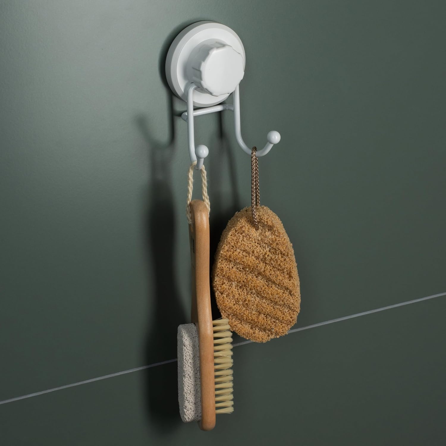 HASKO Suction Cup Hooks for Shower Wall, Removable Towel Hooks for bathrooms, Includes Optional No Drill Adhesive Mount for Inside Shower, Rustproof Stainless Steel - 2 Pack, White