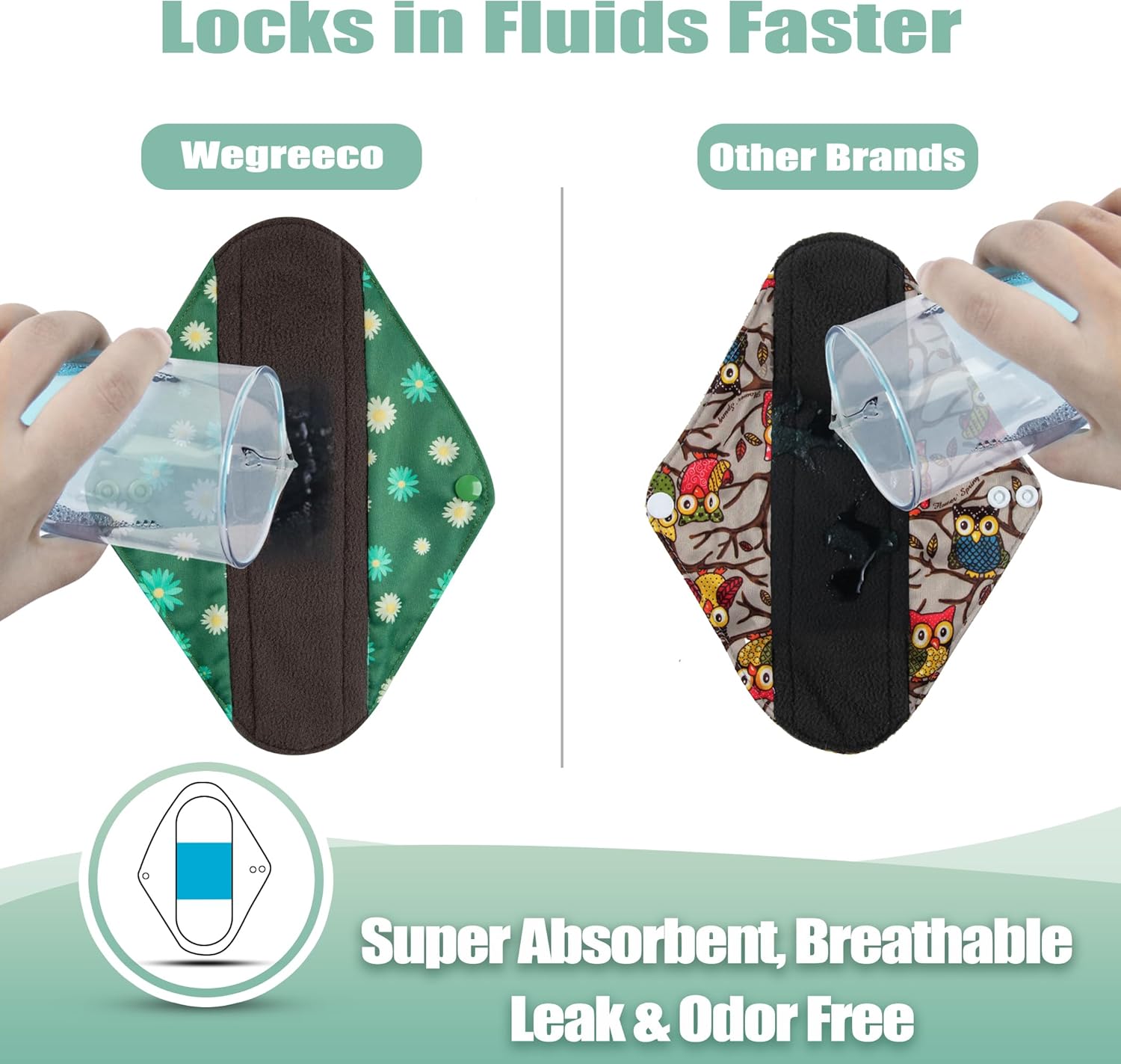 - Charcoal Inner Layers of these cloth menstrual pads is soft with maximum and have a stay dry surface; The dark color is forgiving of stains and Not only great at soaking up liquid, smells are neutralized; Middle layers microfiber make this reusable sanitary napkin super absorbent and a new trend in baby cloth diapers too