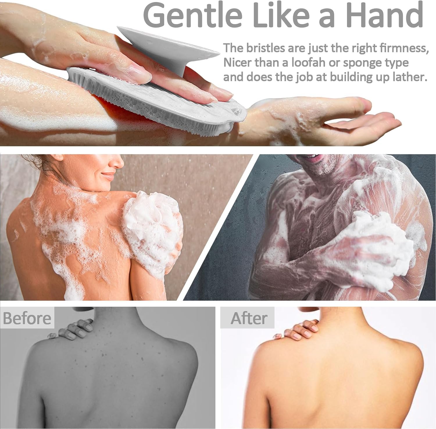 - Gentle Like a Hand : Ariosox Shower body scrubber soft silicon bristles are just the right firmness, Nicer than a loofah or sponge type and does the job at building up lather. Feels like getting a massage every time when you use it