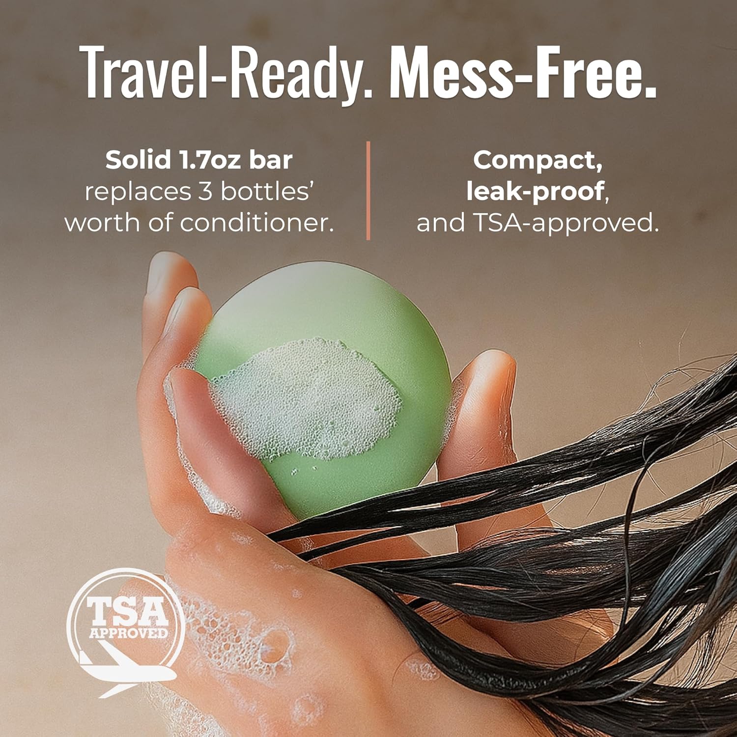 - COMPACT, TRAVEL-FRIENDLY DESIGN: Perfect for on-the-go lifestyles; this solid hair conditioner bar fits in any toiletry bag, is TSA approved, and wonโt leak or weigh you down