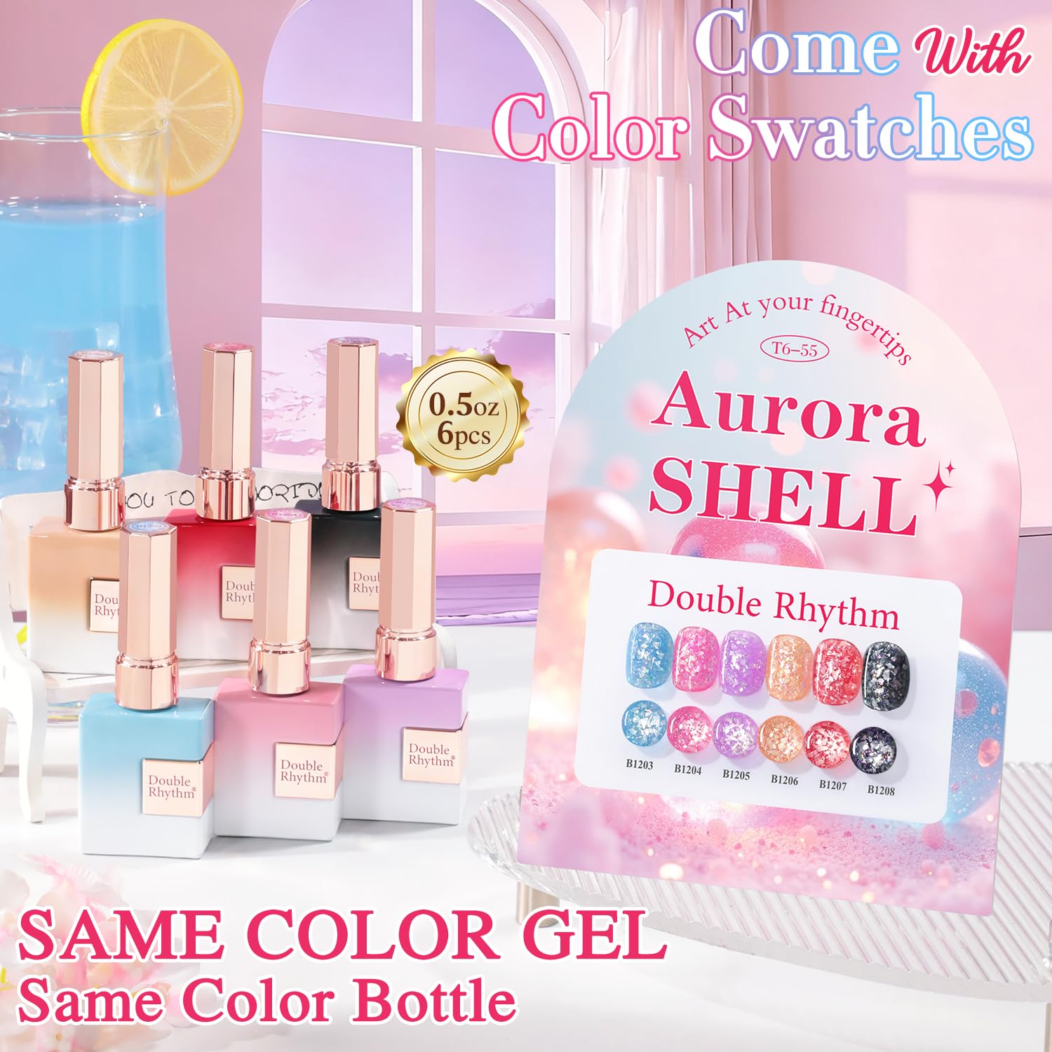 Double Rhythm 0.5 Oz Glitter Gel Polish Set of 6 Color with Display Borad 15 ml Full Size Kit Shimmer Reflective Sparkle Soak Off Manicure Salon DIY at Home (Black Red Pink Blue Orange Purple-T6-55)