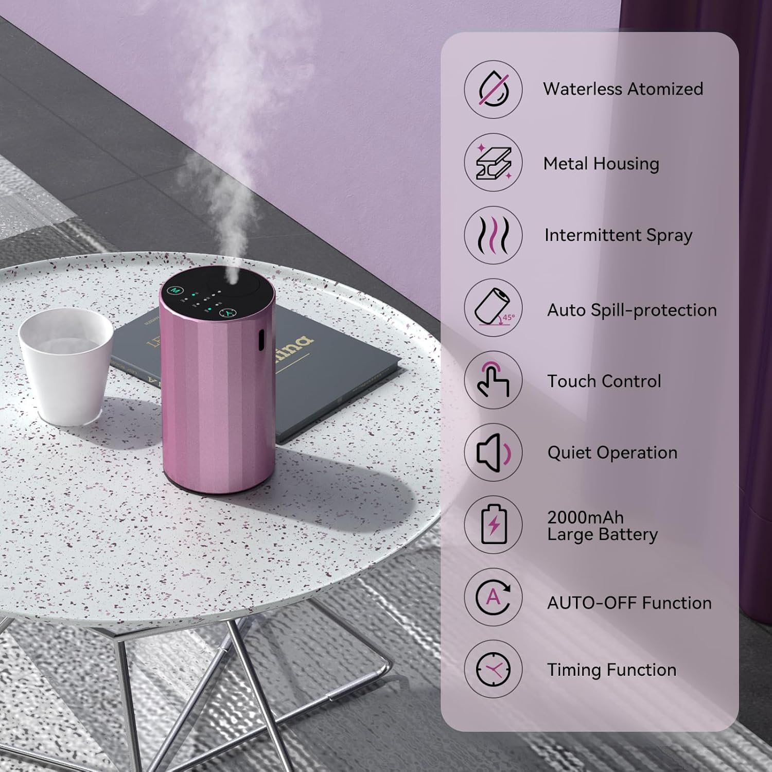 Waterless Essential Oil Diffuser Aromatherapy Scent Diffusers for Home Large Room, Bedroom, Car, Office, Desk, Battery Operated Mini Portable Air Freshener (Pink)