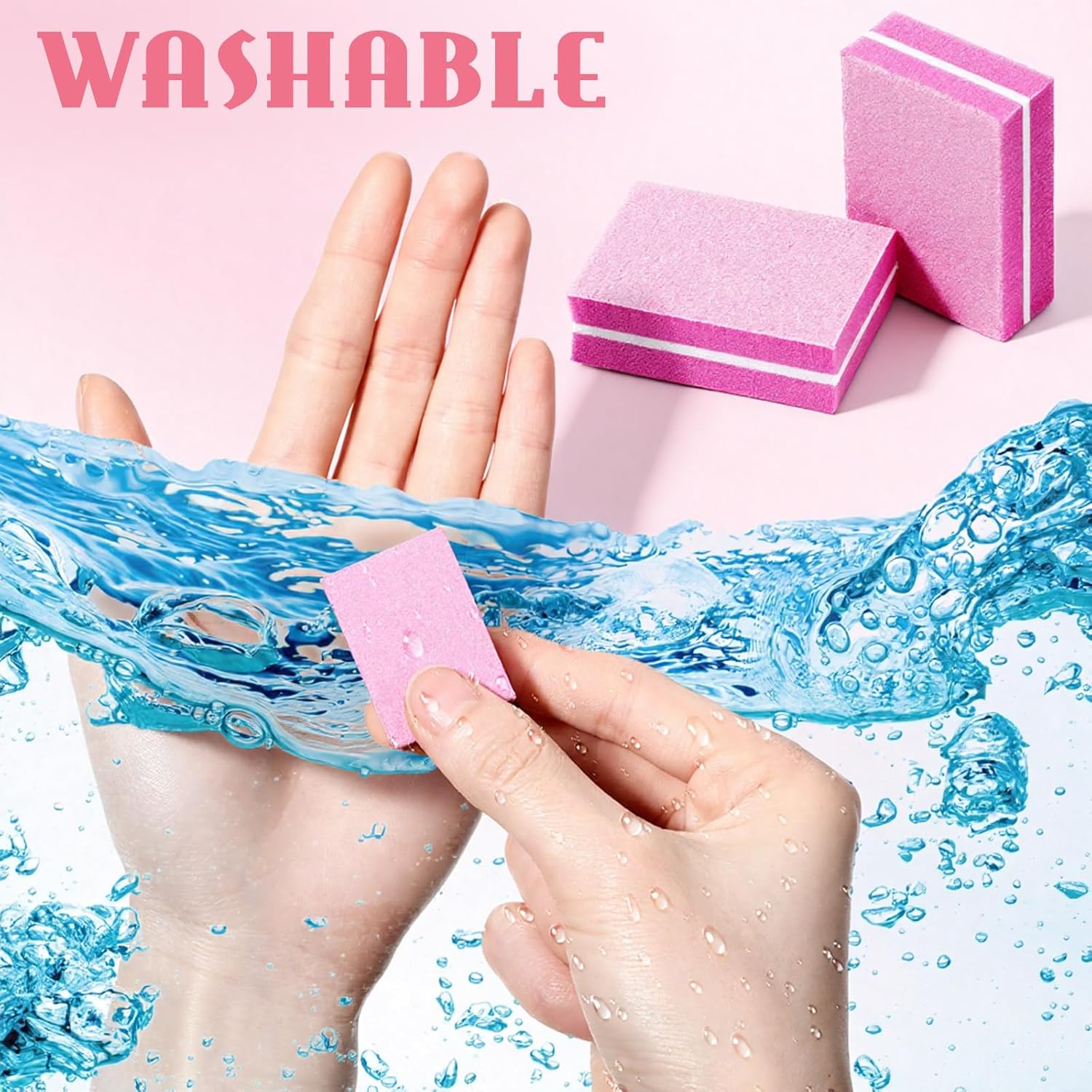200 Pcs Mini Nail Buffer Blocks Bulk Sponge Double Sided Buffing Sanding Block Manicure Tools Bulk Nail File for Acrylic Nails and Natural Nails(100/180,Pink)