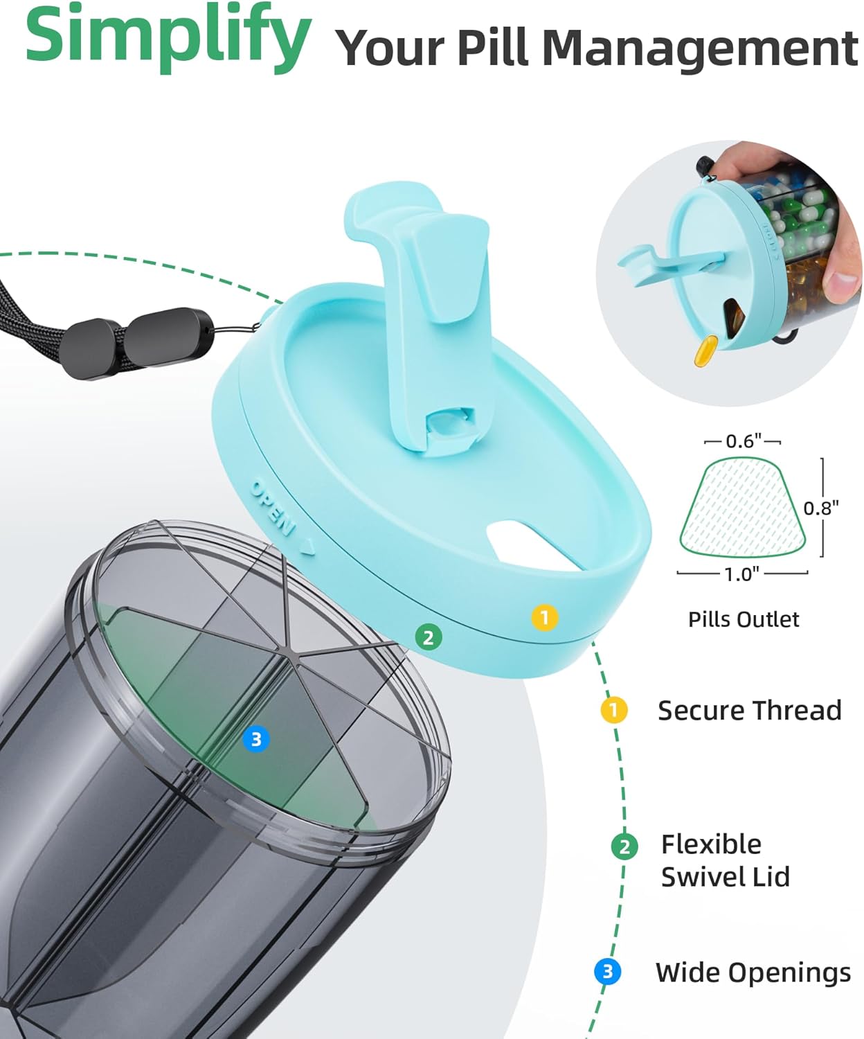- Easy to Retrieve: The smooth-loosing thread and lid can swivel flexibly, and the wide openings are friendly for taking pills. With the above 3 thoughtful and unique designs, the large pill organizer makes filling and taking medication effortlessly