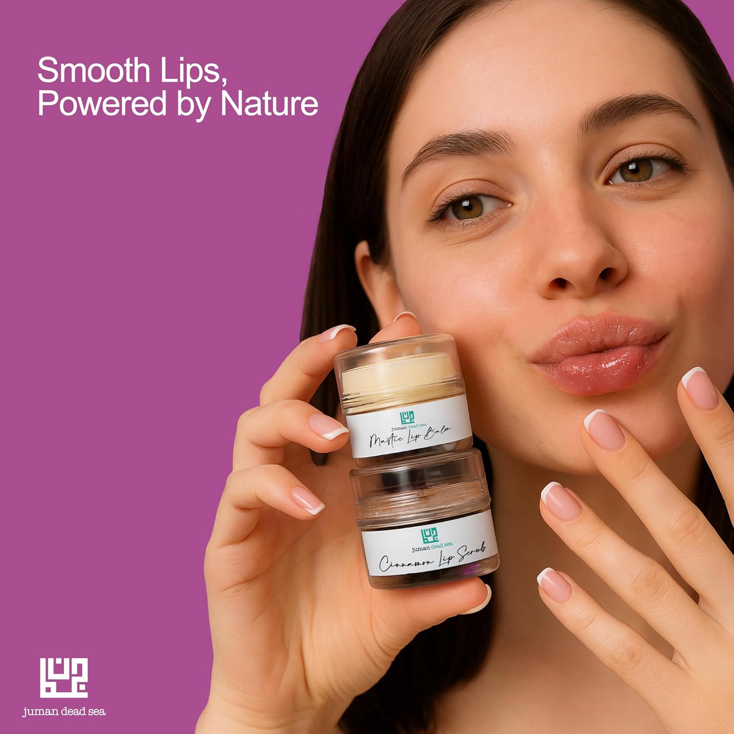 Juman Dead Sea Minerals Lip Gift Set | With Essential Oils | Exfoliating Lip Scrub & Moisturizer Set | Mastic & Cinnamon | Vegan | SLS & Paraben-Free | Great as a Gift
