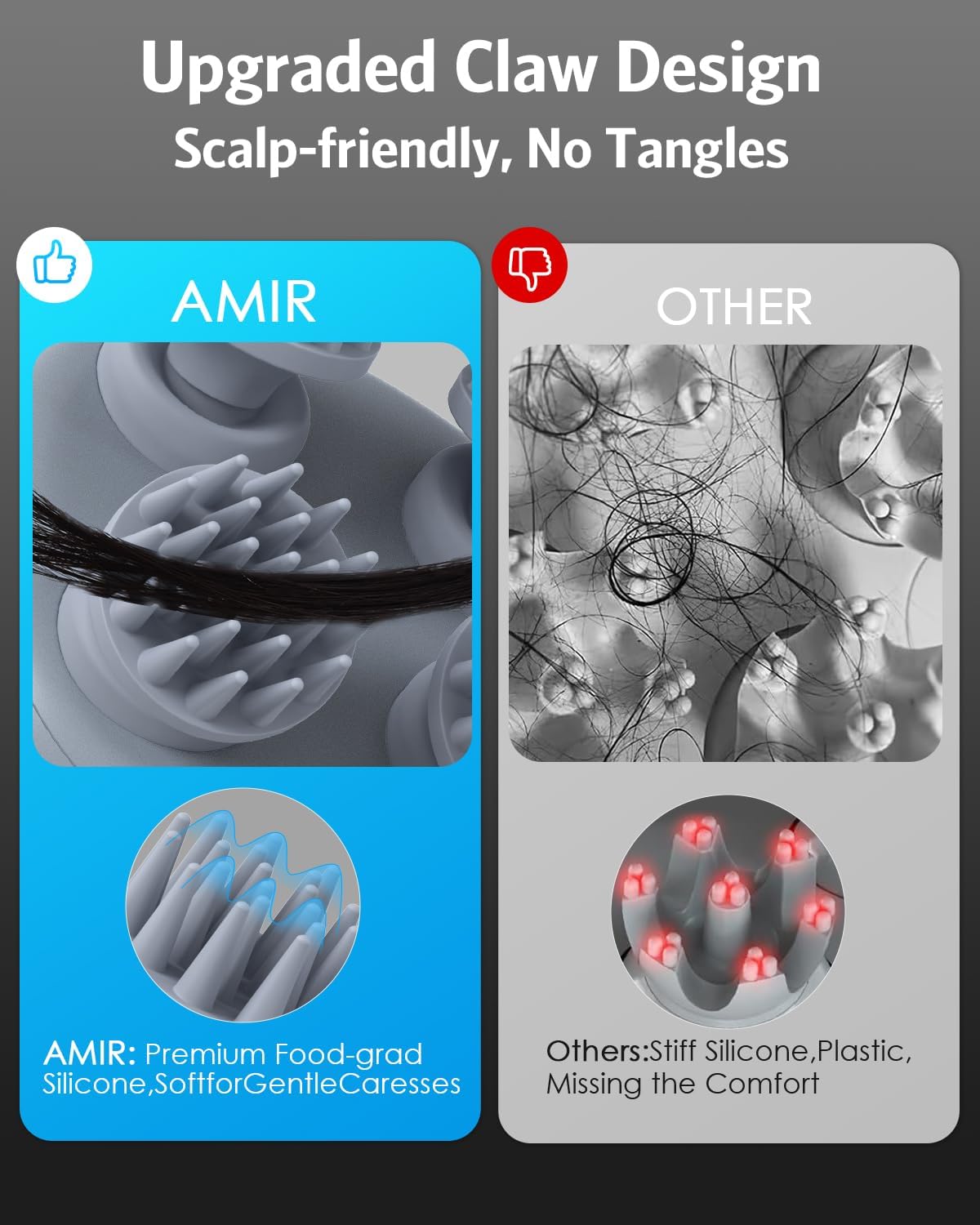 AMIR Electric Scalp Massager, Portable Head Scratcher with 96 Kneading Nodes, Handheld for Stress Relief and Pain Relief, Ideal Gifts for Women, Men (Black)