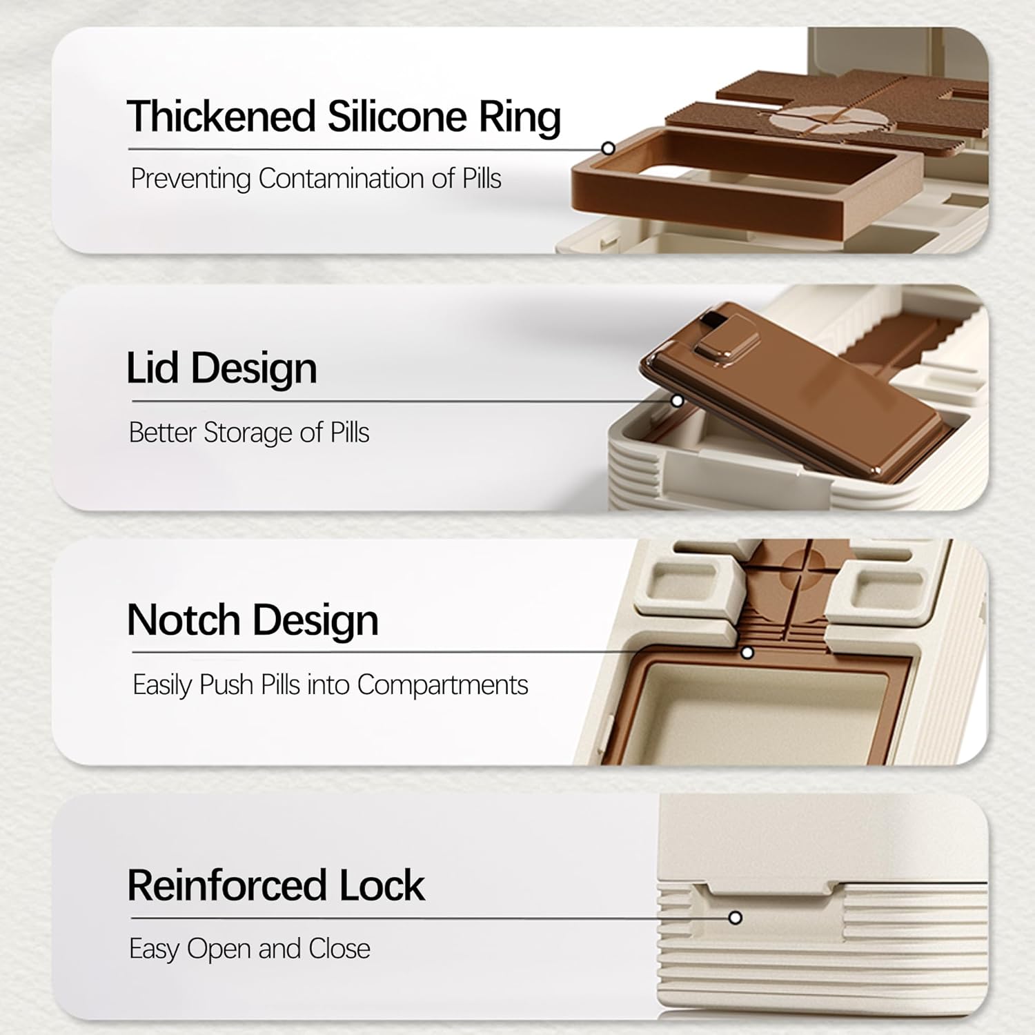 - 【Storage Compartment with Lid】This pill cutter for small and large pills is designed with a storage compartment with lid, you can store your pills temporarily in the compartment to avoid losing and contaminating the pills, better help you maintain your pill-taking schedule throughout the day