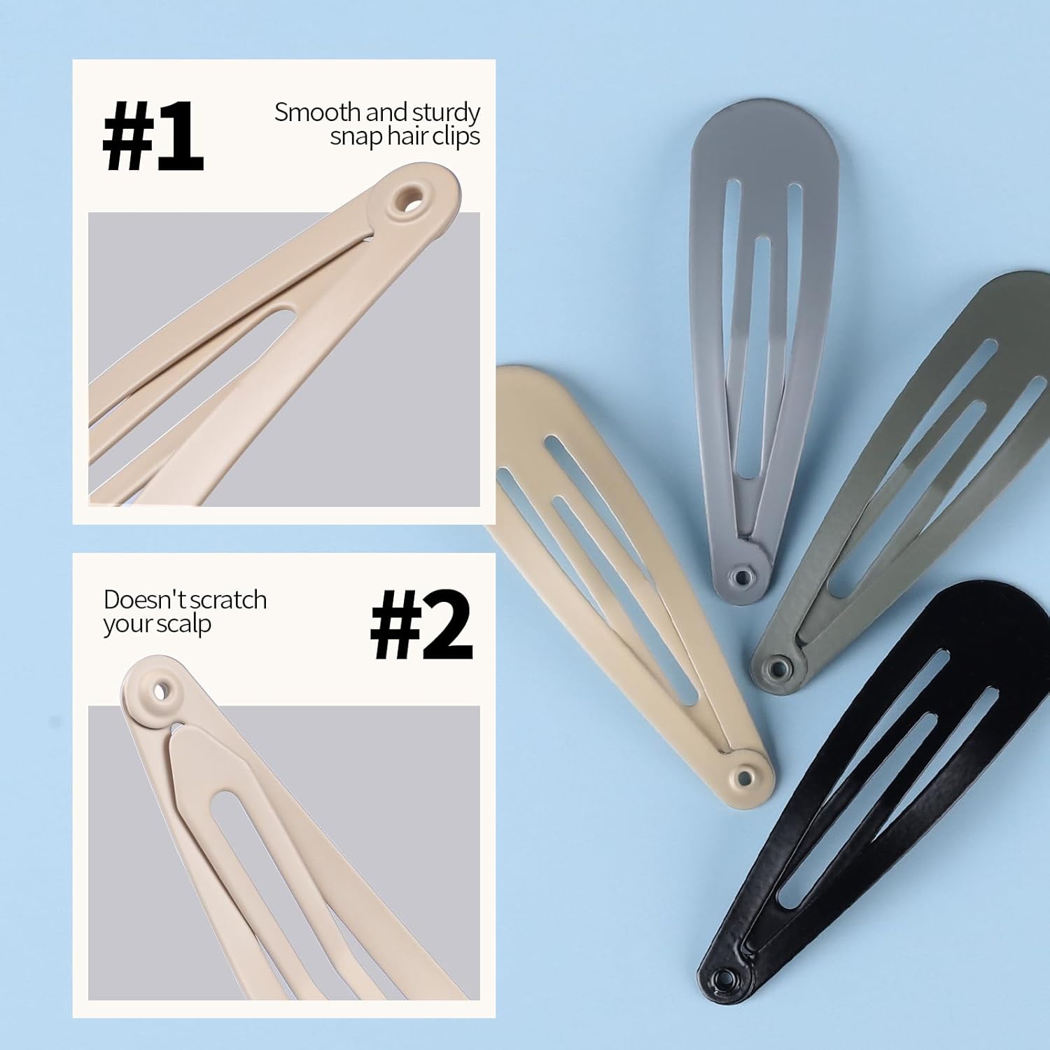 Teenitor Snap Clips, 48pcs Snap Hair Clips Hair Barrettes and 100pcs Clear Hair Bands, Metal Hair clips Barrettes for Women Girls, 2 Inch barrette clips Matte Black Grey Green Taupe
