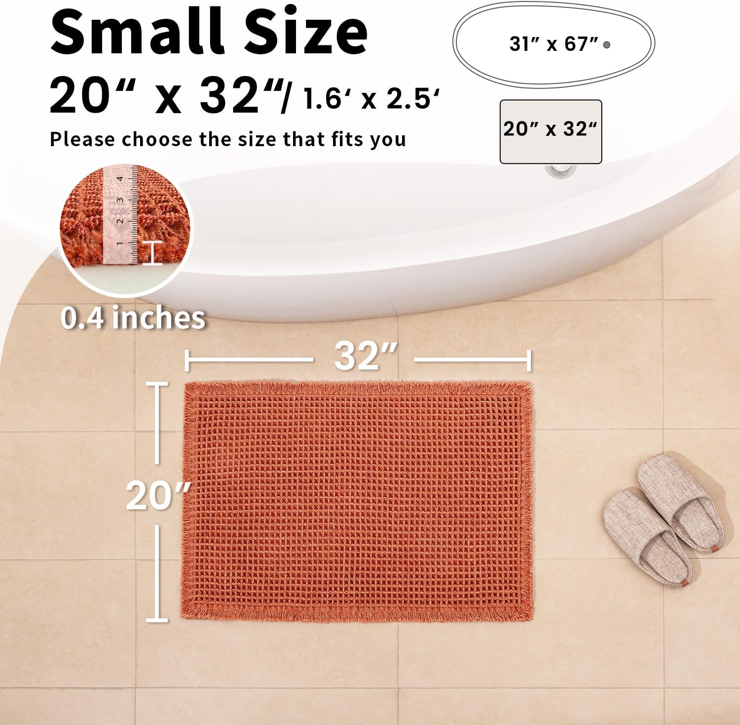 Waffle Bath Mat - Boho Bathroom Rugs Non Slip Washable, Super Absorbent & Quick Dry, Soft Bath Mat Farmhouse Bathroom Decor, 20'' x 32'', Dirty Orange
