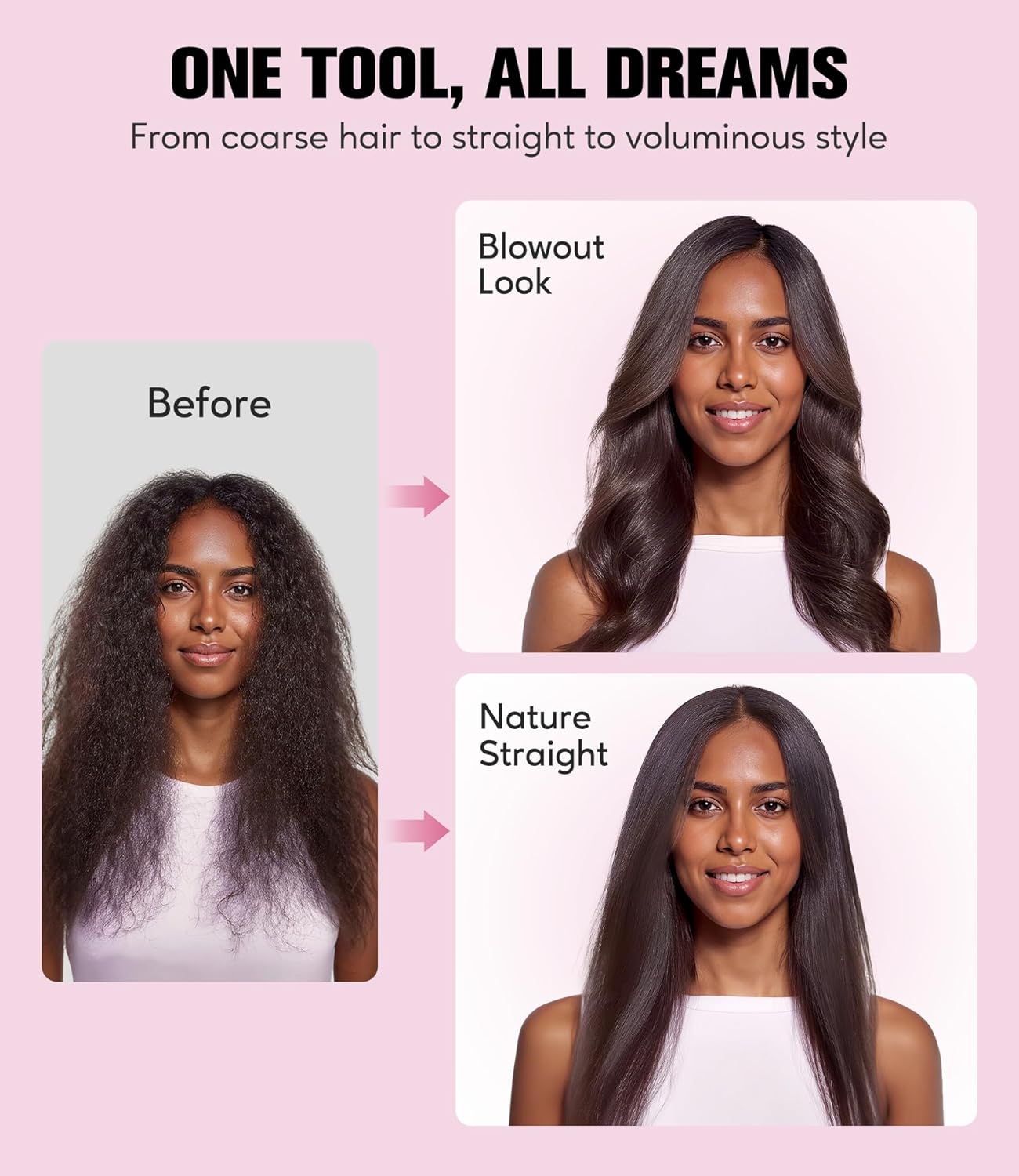 - All-in-One Curl & Style: The Terviiix Ionic Thermal Brush has extra-long heated bristles for a firm hold, making wrapping and styling easy. The tourmaline ceramic barrel ensures even heat, making it a pro at creating big, bouncy curls, sleek lightweight styles, and a trendy fringe. Get salon-like volume and smoothness at home