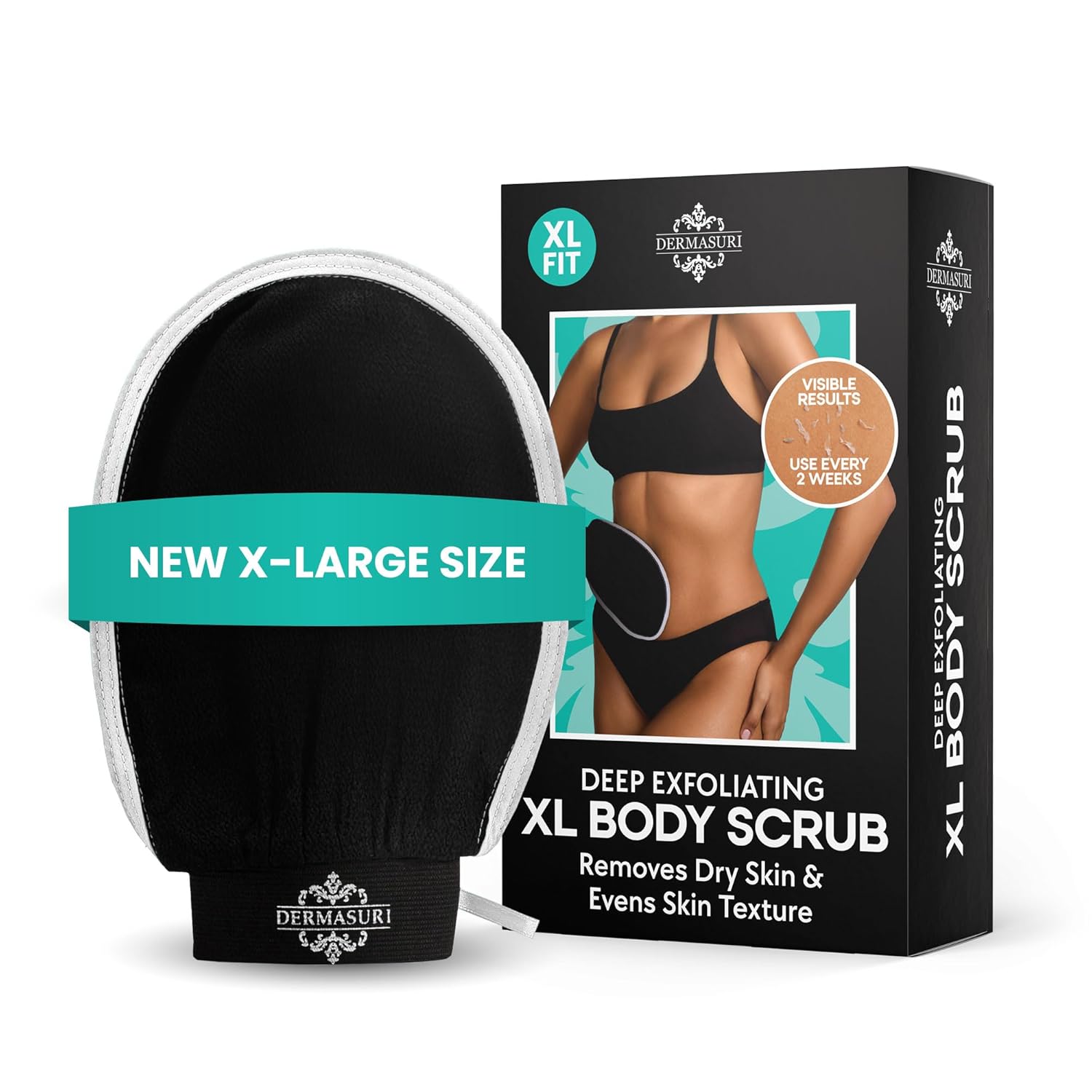 Dermasuri - Deep Exfoliating Glove - Korean Exfoliating Mitt - Reusable Body Scrubber for Shower - Buffs Dry Dead Skin - Keratosis Pilaris Treatment Scrub - Stocking Stuffer Gifts for Women & Men - XL