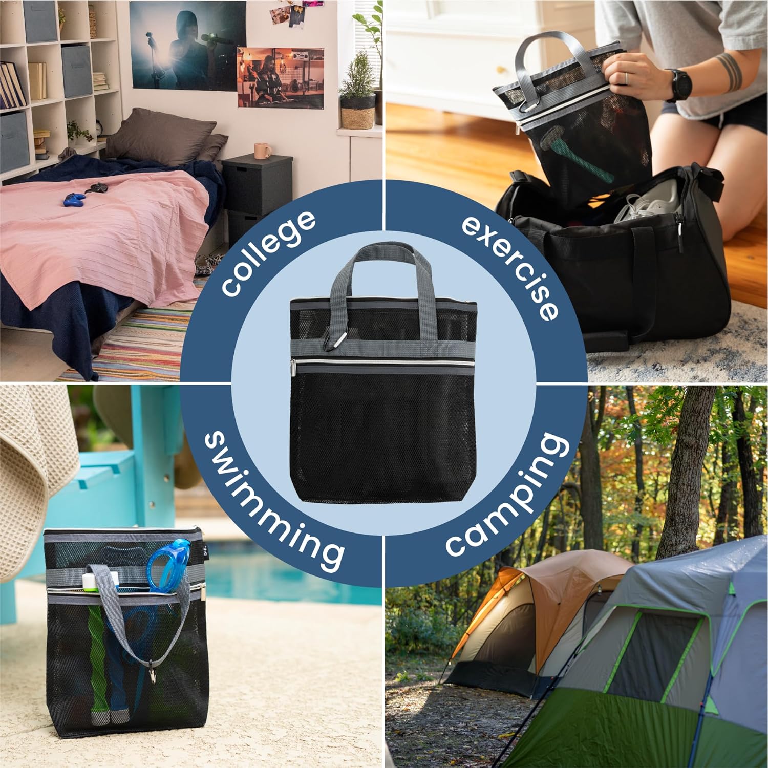 - Quick drying mesh allows water to drain easily, and the reinforced handles provide durable storage; perfect for college essentials, showering after a gym session, as a travel toiletry bag, and more