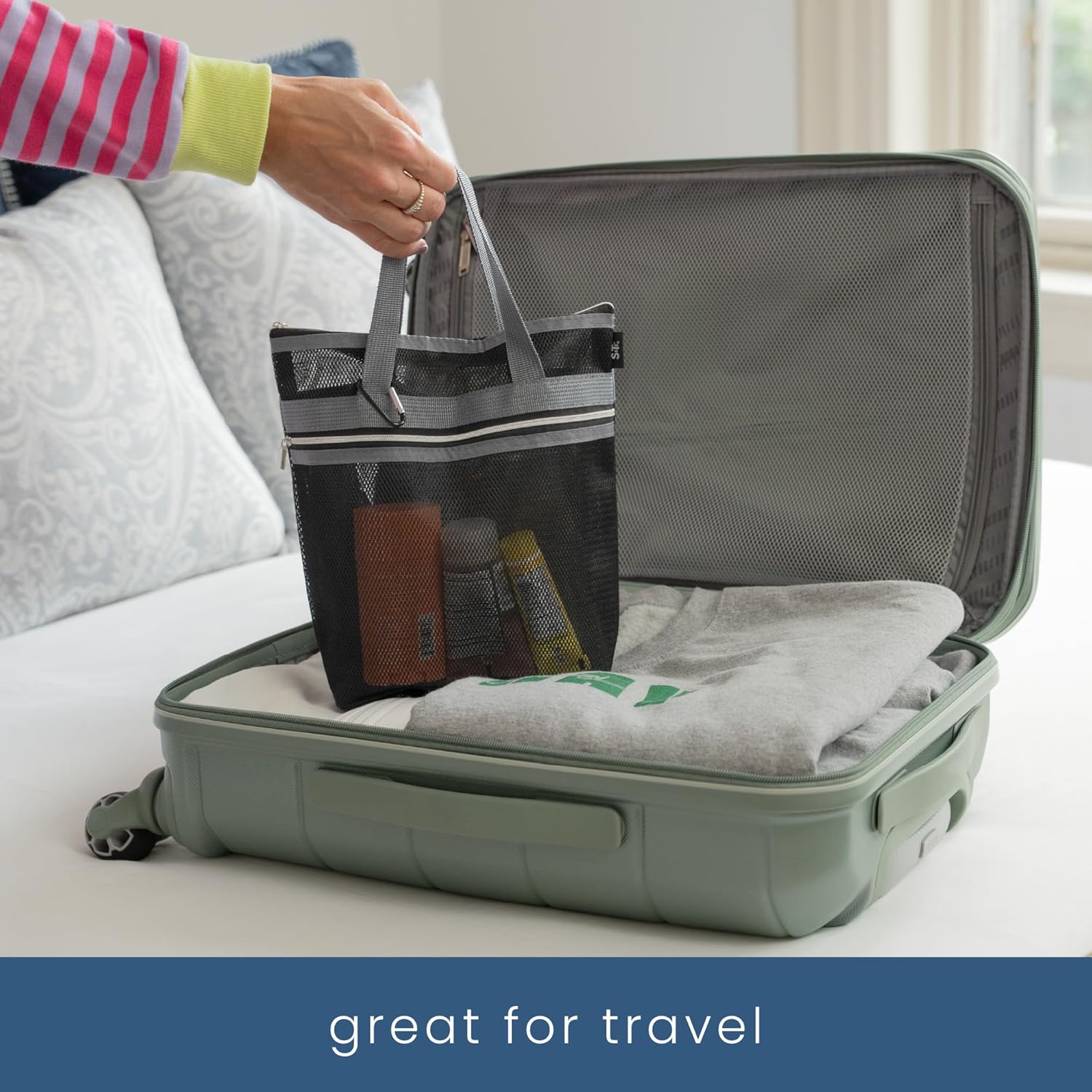 - The versatile shower bag will become part of your RV and camping essentials for easier packing, cruise essentials to stay organized, as a beach bag or by the swimming pool for small pool toys