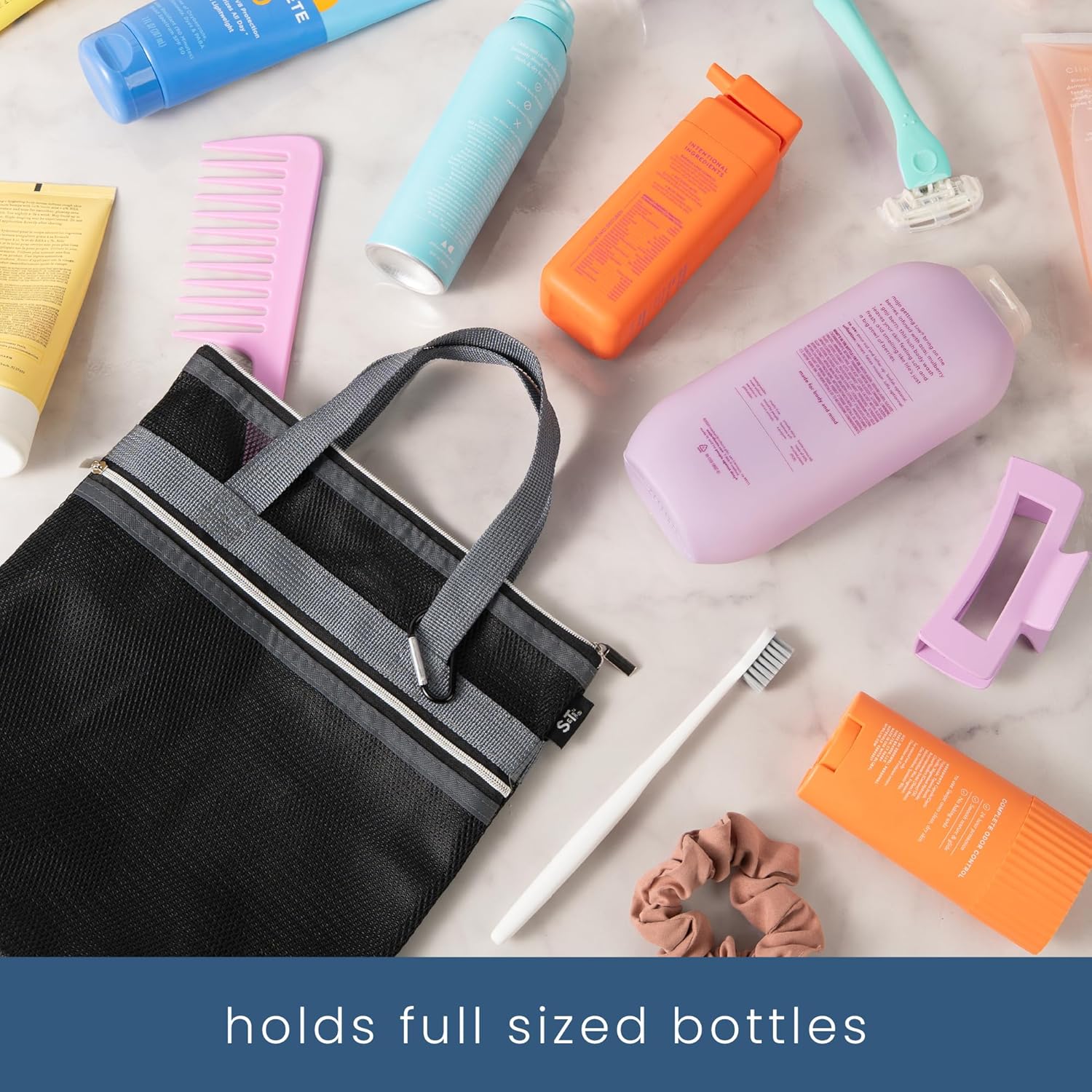 - Includes 1 mesh shower caddy measuring 10" x 10" to help carry and organize your shampoo and conditioner set, razor, hair brush, and other bathroom essentials