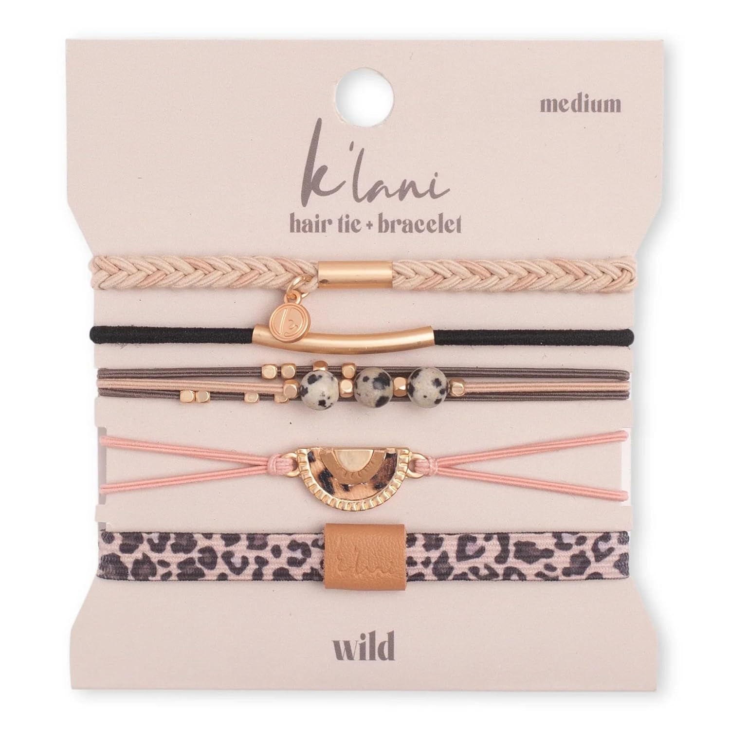 K'lani Wild Bracelets for Women – Elastic Bracelets and Boho Hair Ties – Cute Hair Ties for Women and Hair Tie Accessories – Stylish Bracelets Boho Style for Hair and Wrist – Set of 5 (Medium)