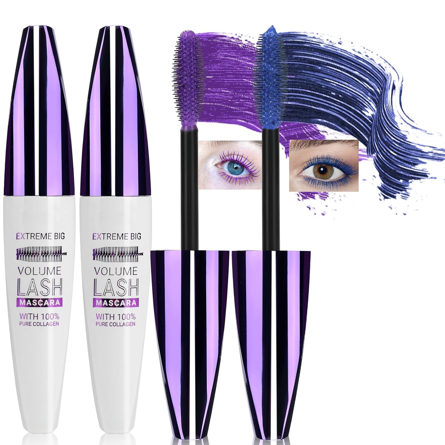 Blue & Purple Mascara for Eyelashes, 5D Colored Mascara 【Waterproof】【Natural Curling】【Lengthening Curling rimel de pestañas Volume】for Women Eye Makeup Cosplay & Parties