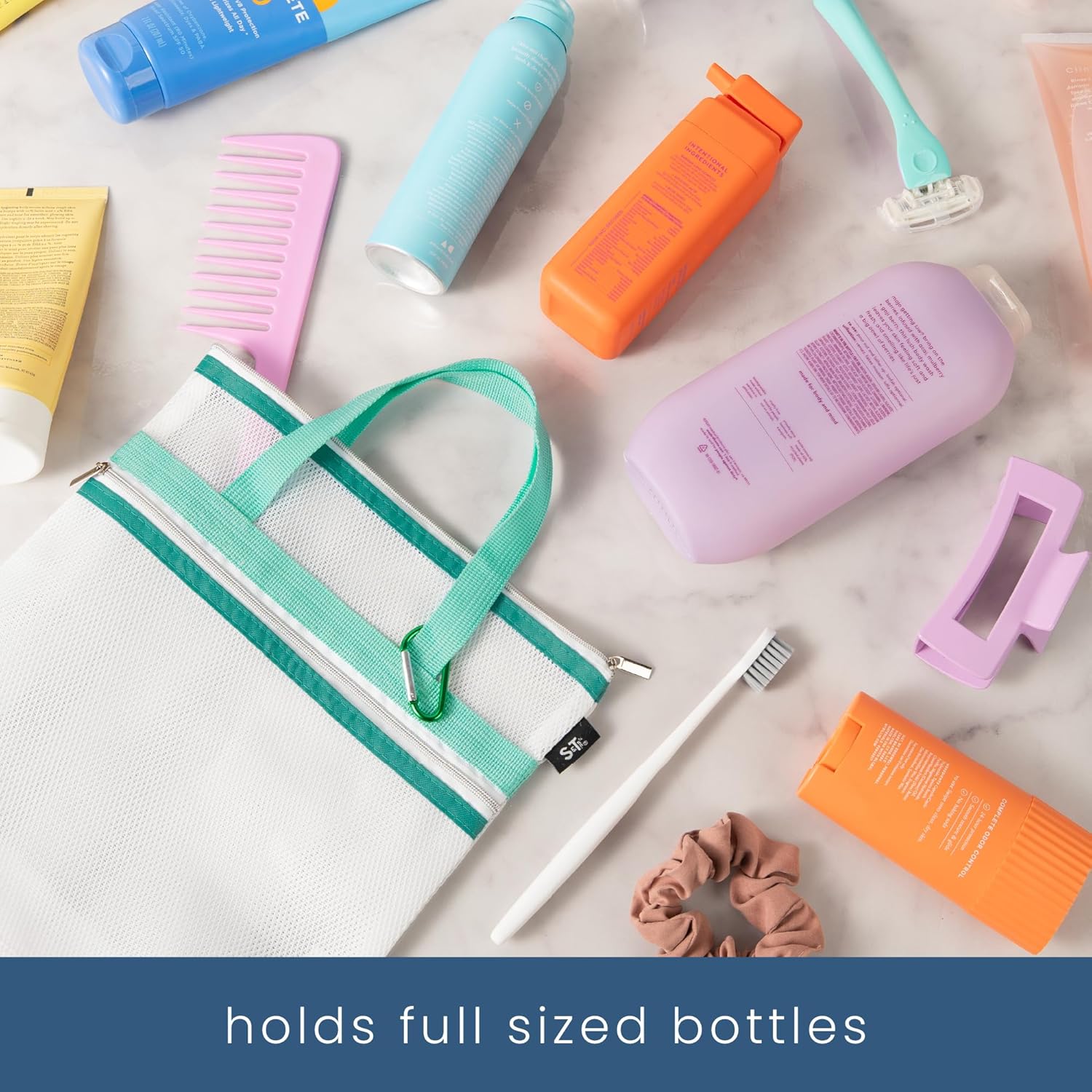 - Includes 1 mesh shower caddy measuring 10" x 10" to help carry and organize your shampoo and conditioner set, razor, hair brush, and other bathroom essentials