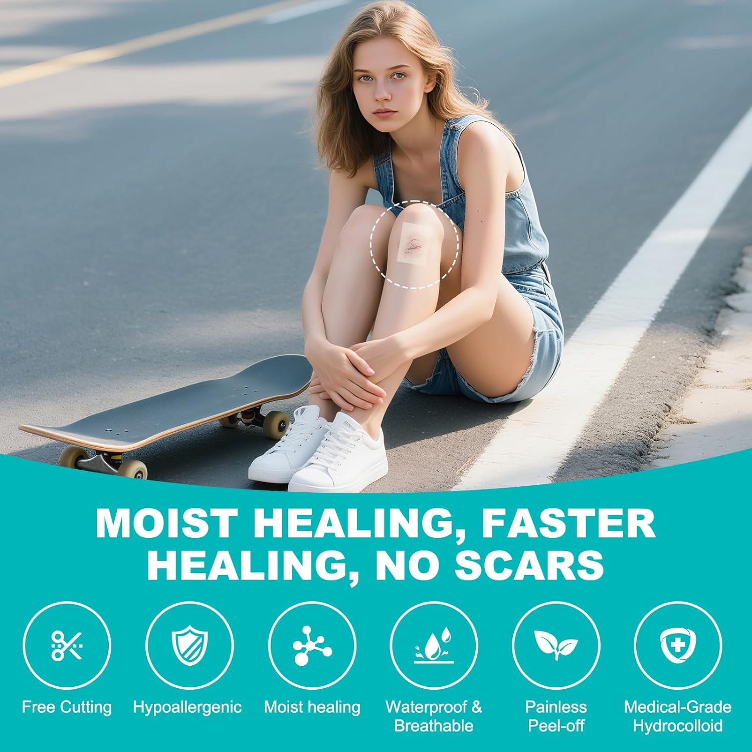 Hydrocolloid Roll for Wound Care, Hydrocolloid Bandages with Self-Adhesive, Cut-to-Size Patch Bandages, Ultra Absorbent, Waterproof, First Aid Kit Essential (2IN*4.8FT)