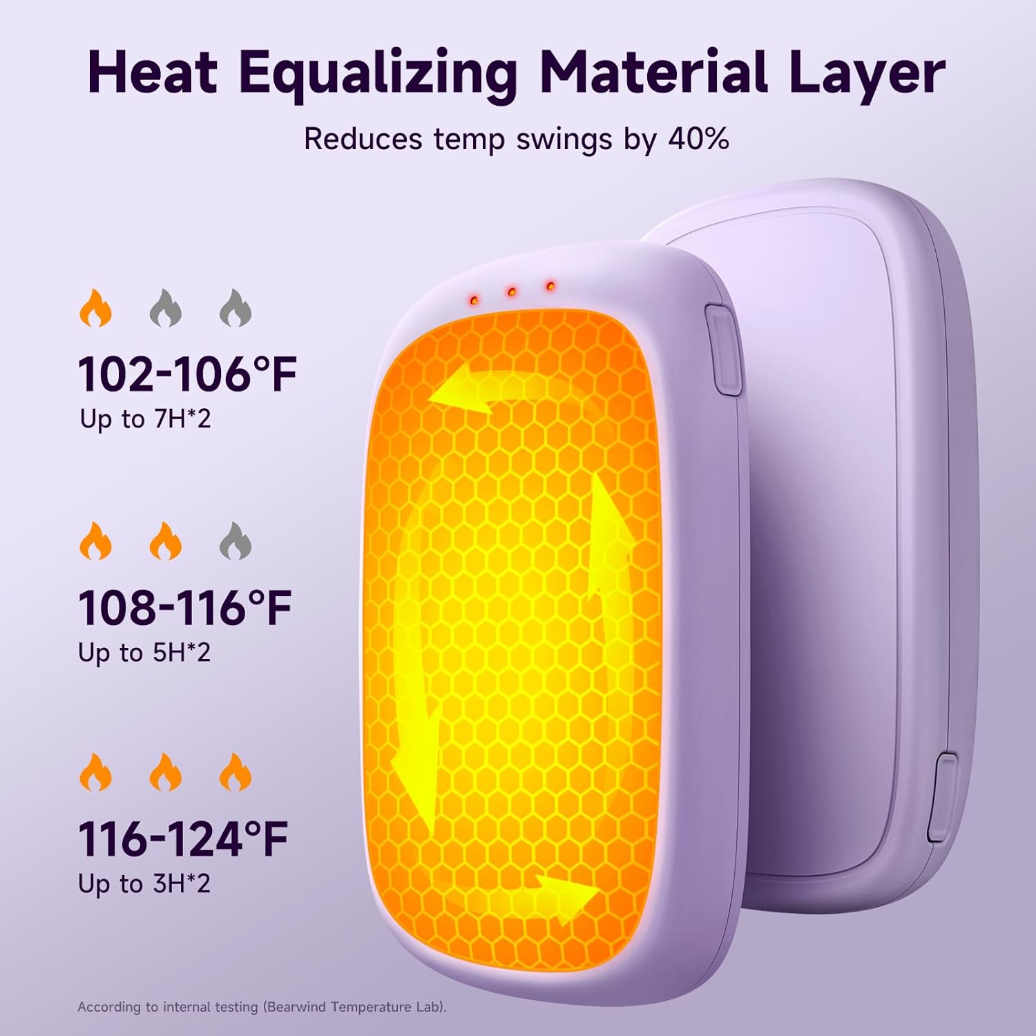 - 3 Heat Levels, All-Day Ready: Set to 104°F, 111°F, or 120°F. Battery lasts about 3-8 hours per charge (varies by level and ambient temperature). Ideal for nighttime warmth, outdoor work, winter walking, and hunting; helpful for cold-sensitive hands (e.g., Raynaud’s).