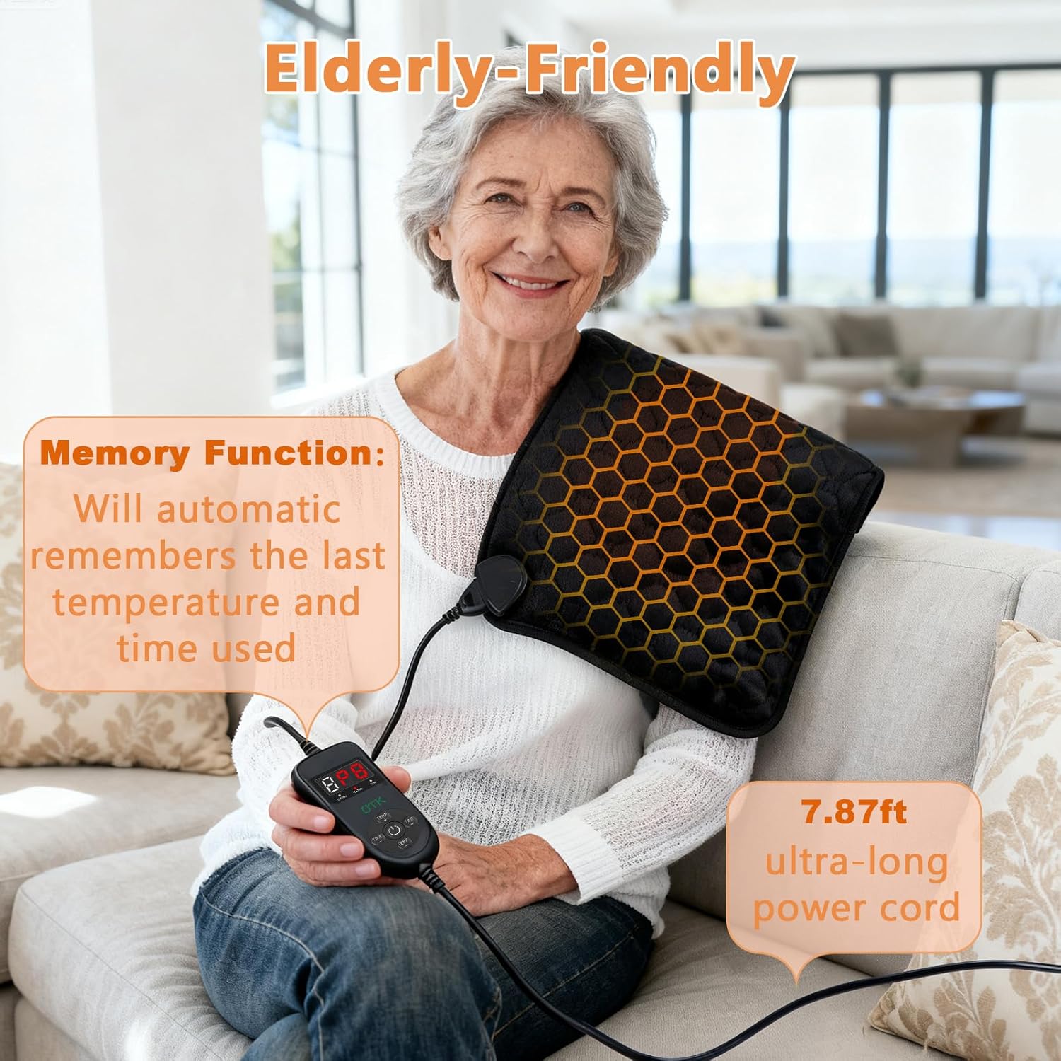 - 5-Fold Protection, More Safer: HSA/FSA Eligible. UTK back heating pad adds 5-fold safety protection measures, which is safer and more reliable than other ordinary electric heating pads, allowing you to use it with peace of mind. 7.87ft ultra-long power cord, whether it is on the bed, sofa, office or gym, you can use it without worry. It also supports 220V-240V voltage. You only need a conversion plug to take it with you to travel around