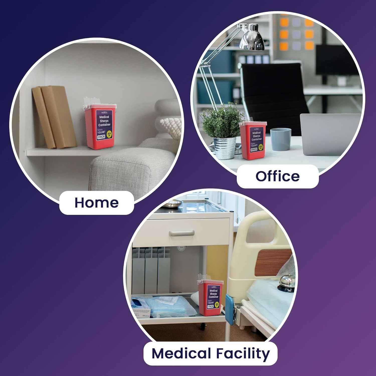 - Easily and safely dispose of medical waste including needles, sharps, blades, razors, pens, and more with ProHeal's 1qt container for medical sharps
