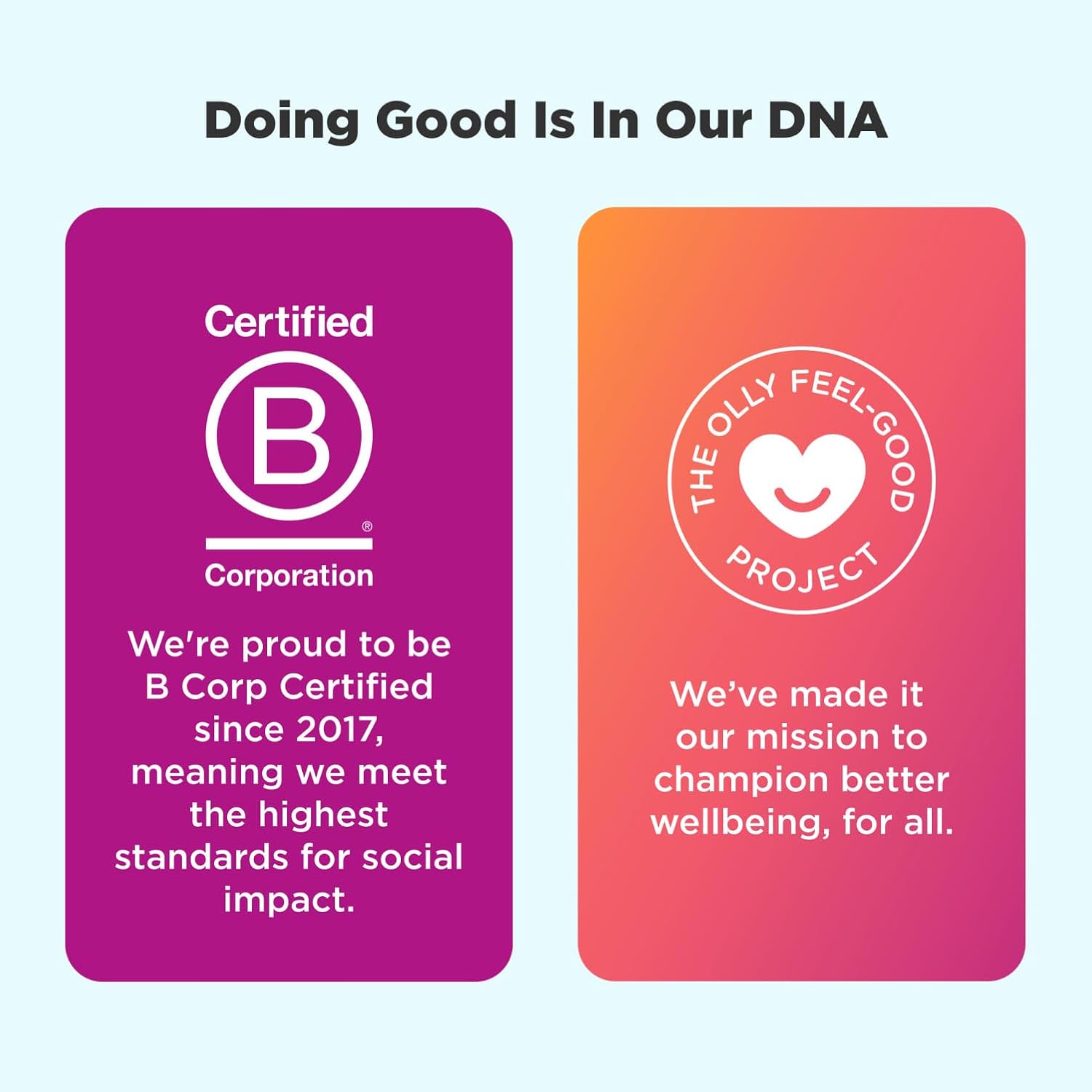 - MORE OLLY GOODNESS: We create products that are just as effective as they are deliciousâgummies, multivitamins, drink powders, premium softgels and more ways to feel happy inside out