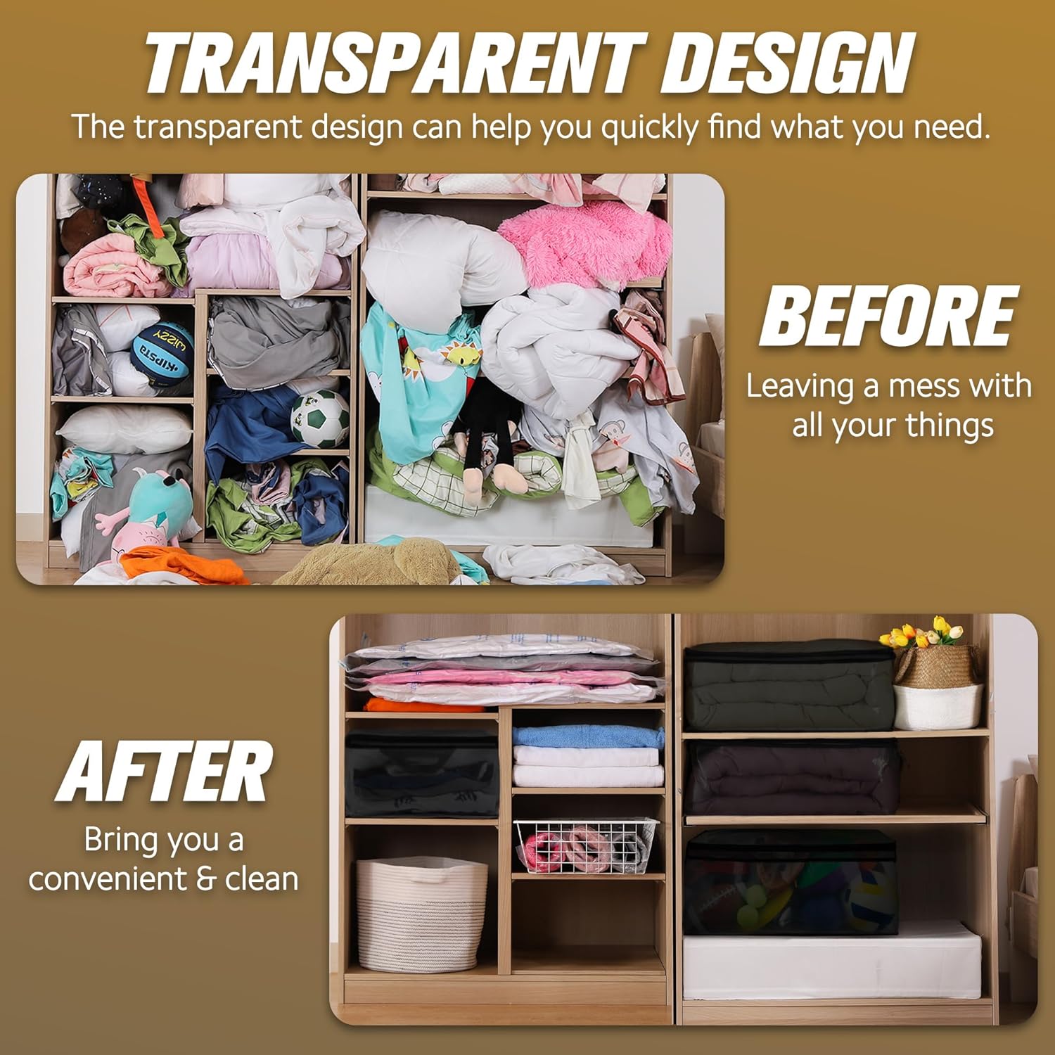 - Large Storage Bags for Clothes: Our large, flexible clothing storage bags offer a space-saving alternative to bulky bins. Easily stowable under beds or in closets and attics, they're perfect for rooms and living areas, maximizing storage without sacrificing style.