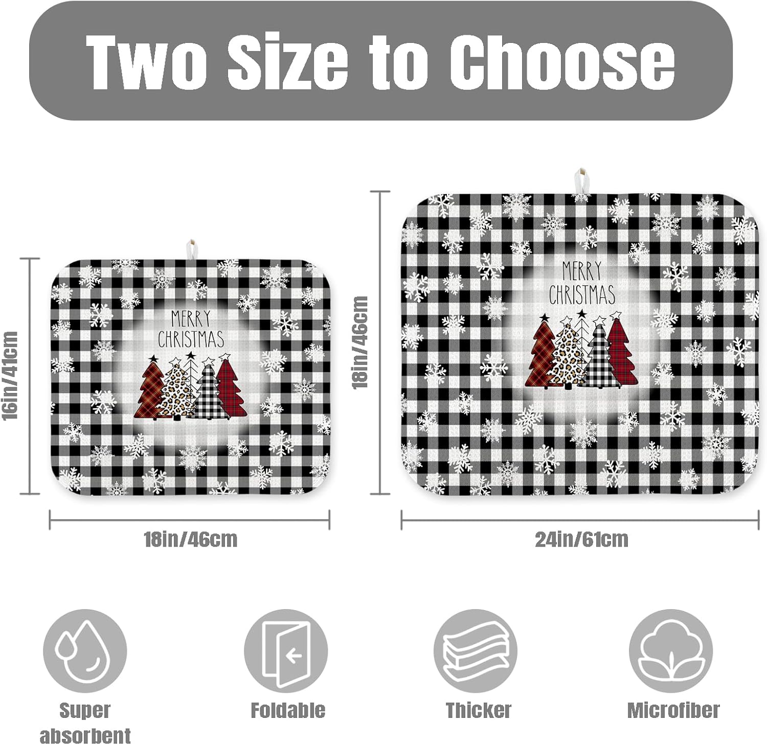 Dish Drying Mat for Kitchen Counter Large 16" x 18" Buffalo Plaid Christmas Tree Absorbent Microfiber Dishes Drainer Rack Mats Pad Reusable Washable