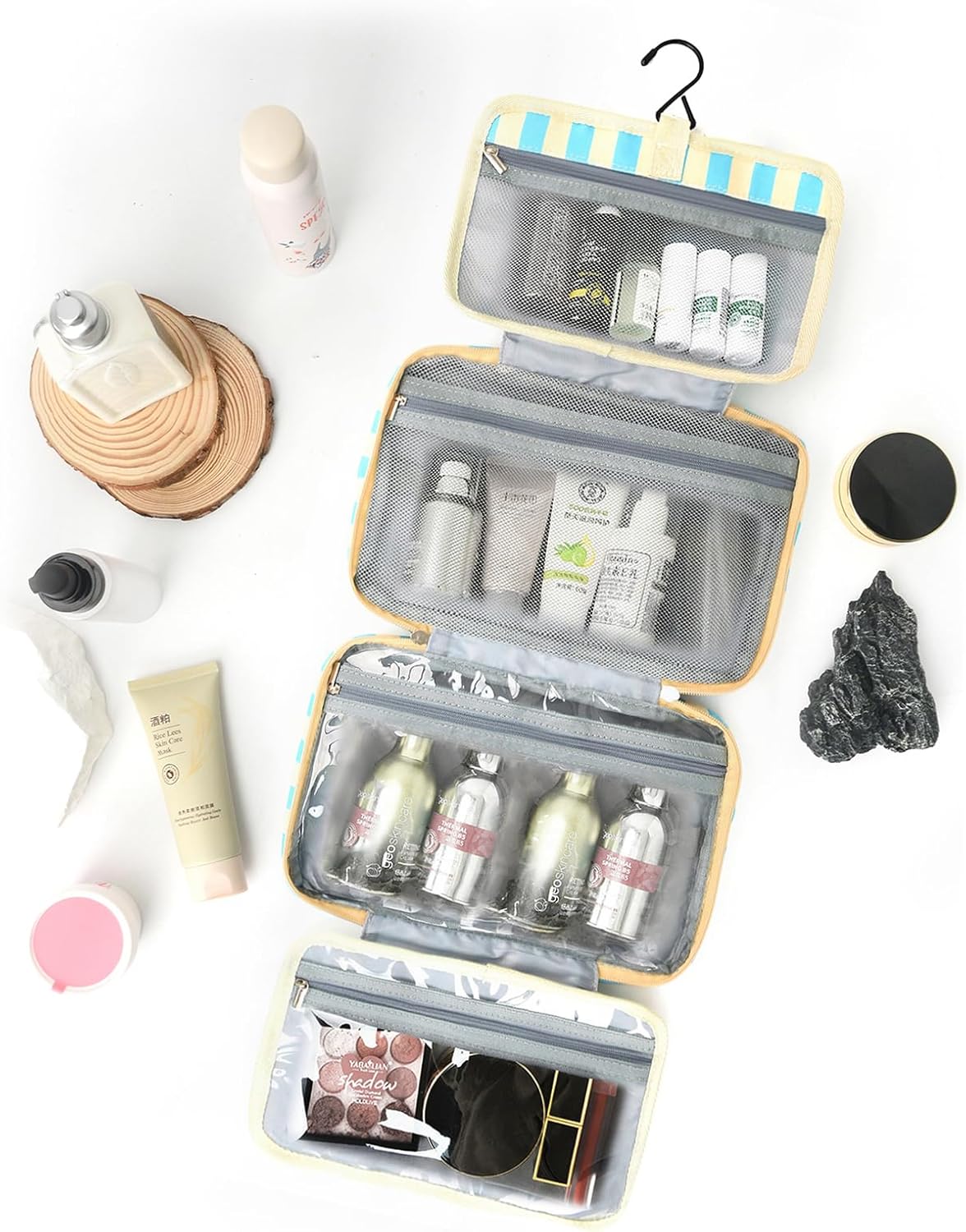 - UNIQUE DESIGN: The interior and exterior are designed with a user-friendly design, upgraded waterproofing, and transparent PVC for easy access. When unfolded, four independent compartments, separating wet and dry storage. Zippered, it provides secure storage and keeps toiletries, makeup, and accessories organized. The compartment design allows for easy viewing. An internal hanging hook makes it easy to hang and use. Multifunctional design makes it durable and practical