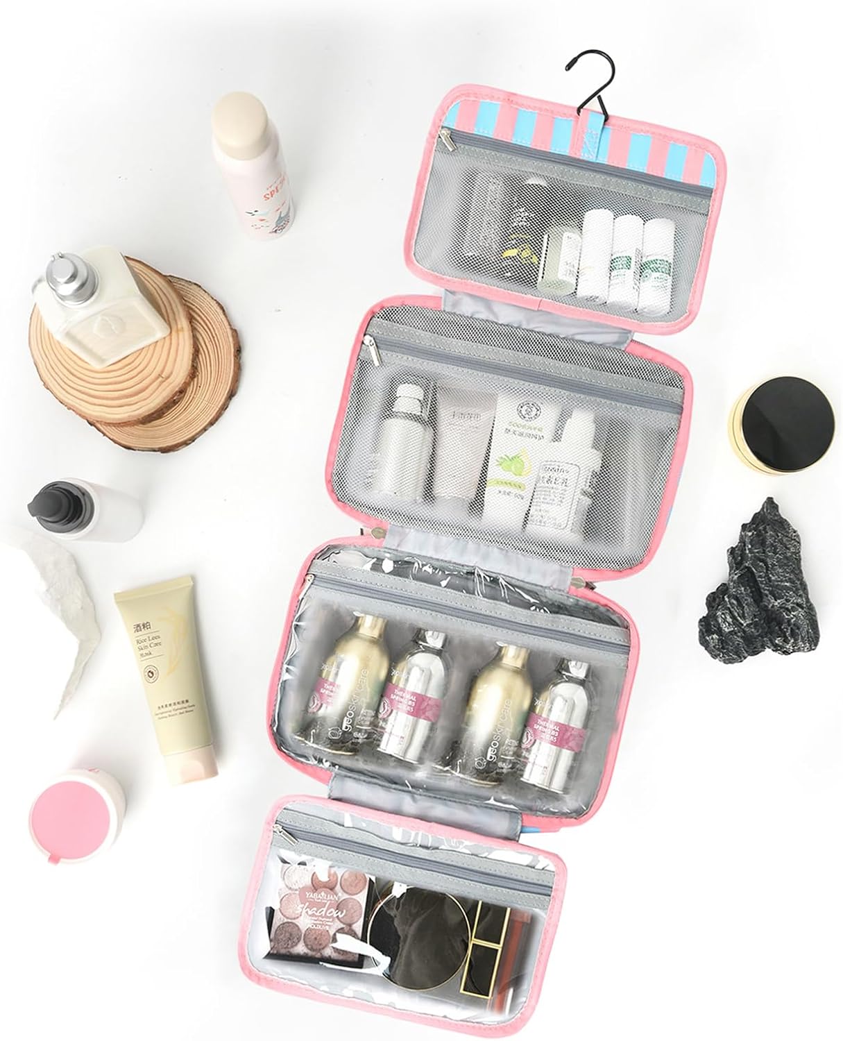 - SUITABLE FOR VARIOUS OCCASIONS: It's ideal for storing and organizing household cosmetics and toiletries, travel supplies, makeup for performances and dances, and weddings and bridesmaids' makeup. It's perfect for overnight stays, long trips, business trips, gym showers, and outdoor activities. It's the ideal companion for business trips, travel, fitness, camping, campus, and at home