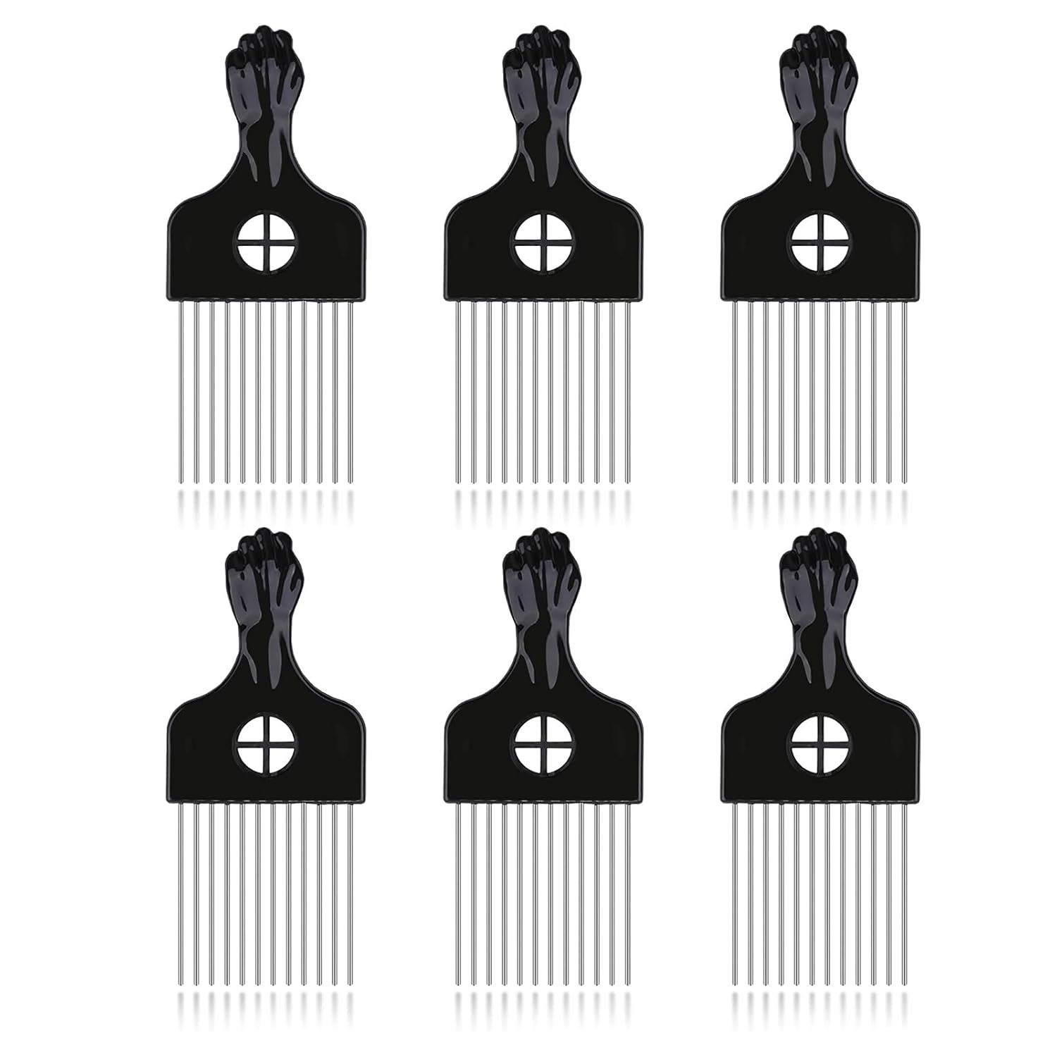 6Pcs Afro Picks Metal Hair Combs, Steel Teeth Hair Pick for Curly, Coily, Natural Hair, Detangling, Styling Comb for Men Women (Black)