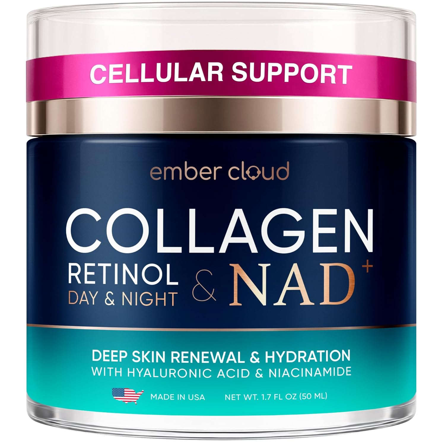 Collagen NAD+ Cream for Face Retinol Hyaluronic Acid Niacinamide for All Skin Types - Anti-Aging Face Moisturizer with Airless Pump - Day & Night Cream for Wrinkles - Made in USA 1.7 Oz