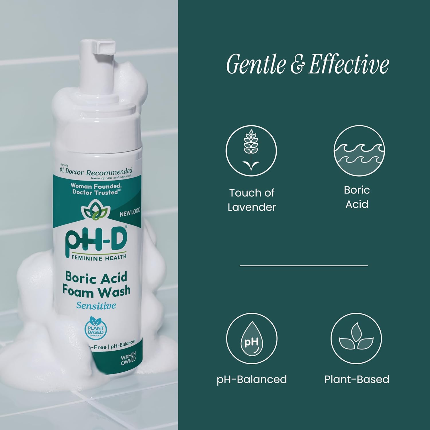 pH-D Feminine Health - Boric Acid Foam Wash - pH-Balanced, Paraben-Free, and Plant-based (Sensitive, 6 Fl Oz (Pack of 2))