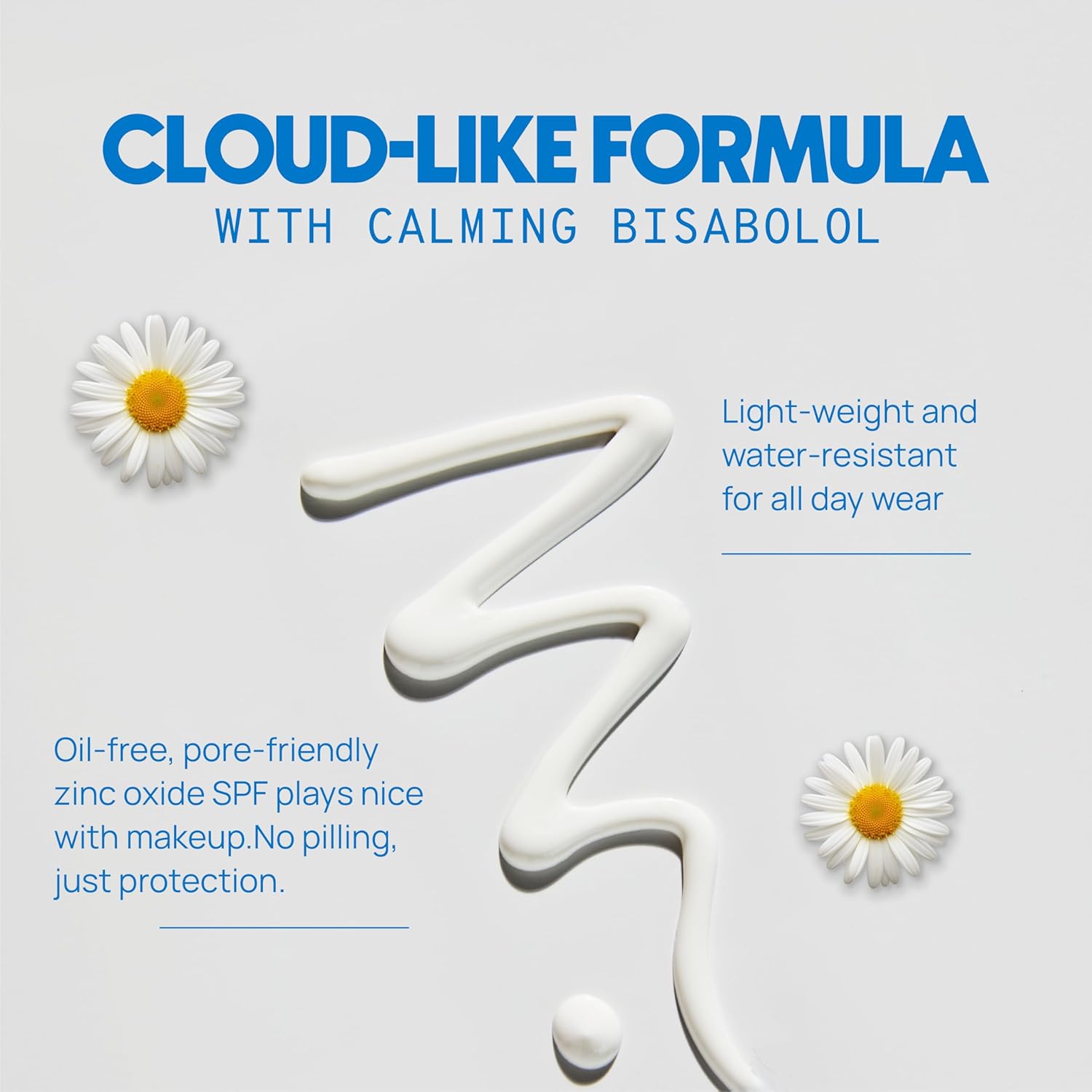 - CLOUD-LIKE FORMULA WITH CALMING BISABOL - This seamless sunscreen disappears as fast as last weekâs hookup. Oil-free zinc oxide is a pore-friendly formula that doesn't pill under makeup. Water-resistant all-screen perfect as daily SPF with cloud-like feel.