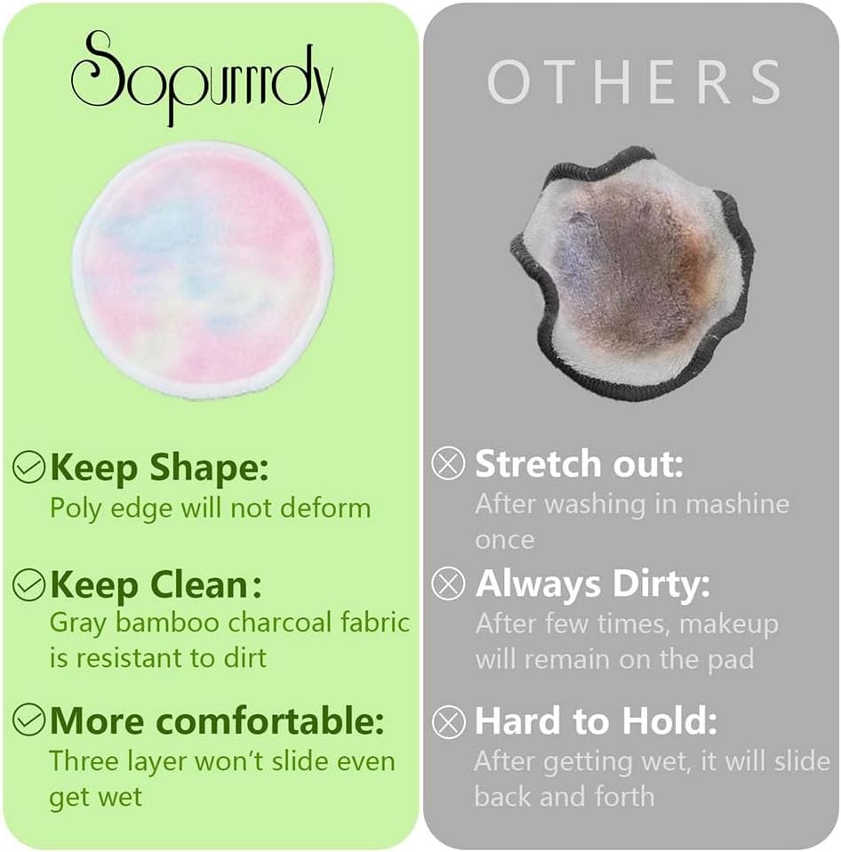- GREAT CLEAN ALTERNATIVE-The soft rounds reusable pads 100% remove your makeup away with your favorite cleanser, you can apply your own cleanser to your face, wet the pads with warm water and in a circular motion wipe off all your makeup / dirt buildups etc. Another way is to wet the pads with warm water, put your favorite cleanser on the pad and in circular motion wipe off all your makeup away. Continue the process until your makeup is completely removed.