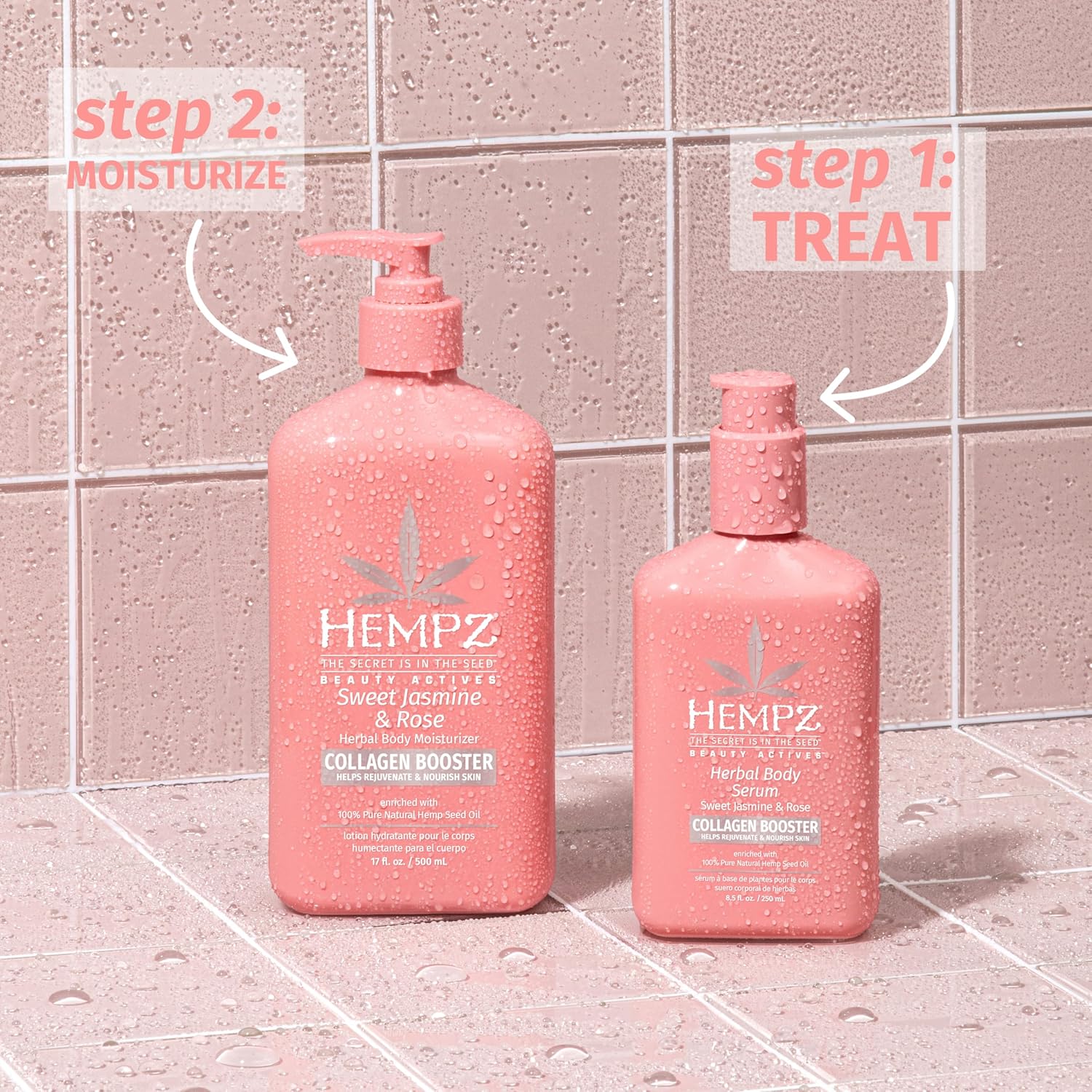 Hempz Sweet Jasmine & Rose Body Serum with Collagen Booster, Light weight, Fast Absorbing Cream Gel, 8.5 fl.oz.