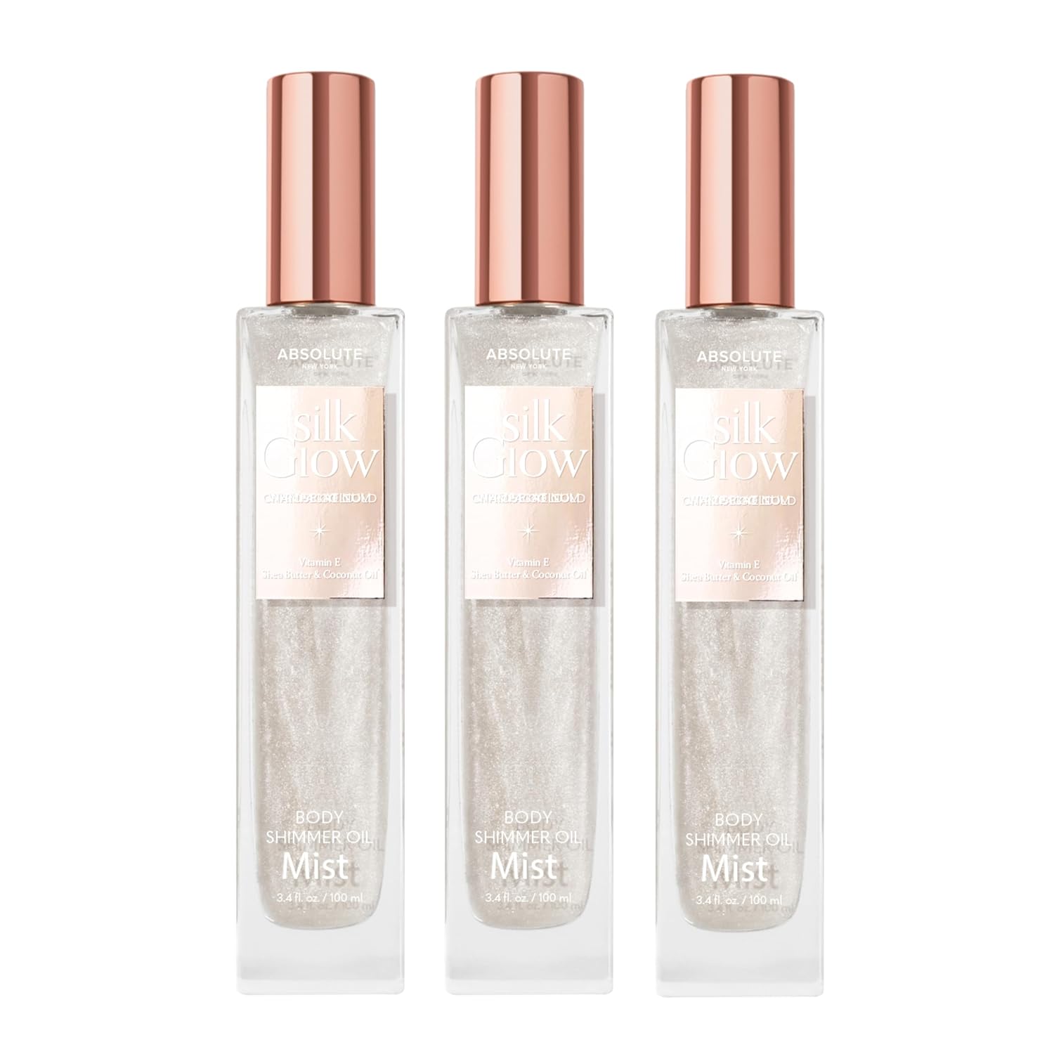 - 【FEATURES】 Give skin a radiant, sun-kissed glow with Absolute New York’s Silk Glow Body Oils! Infused with Vitamin E, Shea Butter, and Coconut Oil for moisture and glow that lasts all day.