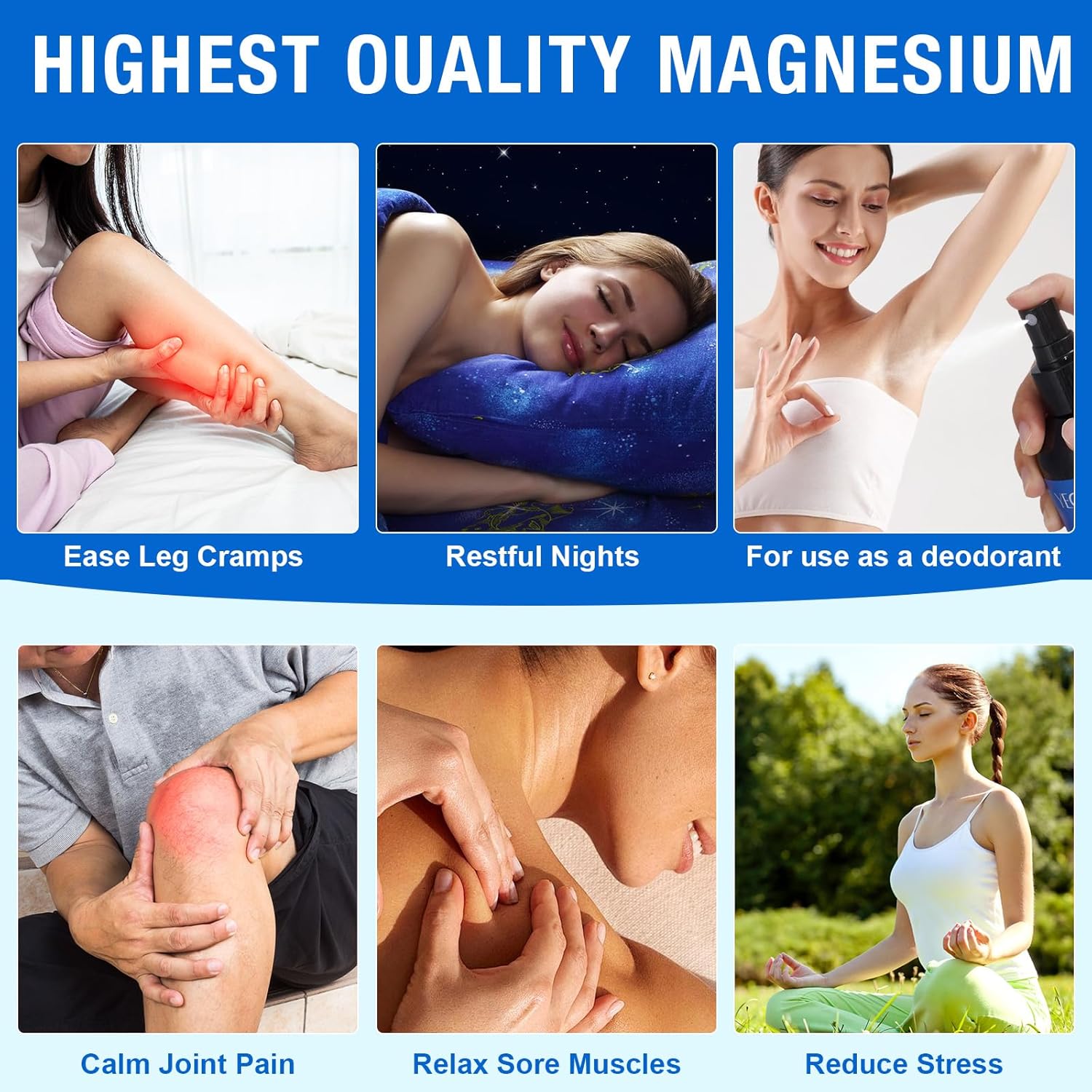 - Pure Natural Mineral Magnesium: 100% natural magnesium chloride spray, It contains no additives, Safe for you to supply mineral magnesium