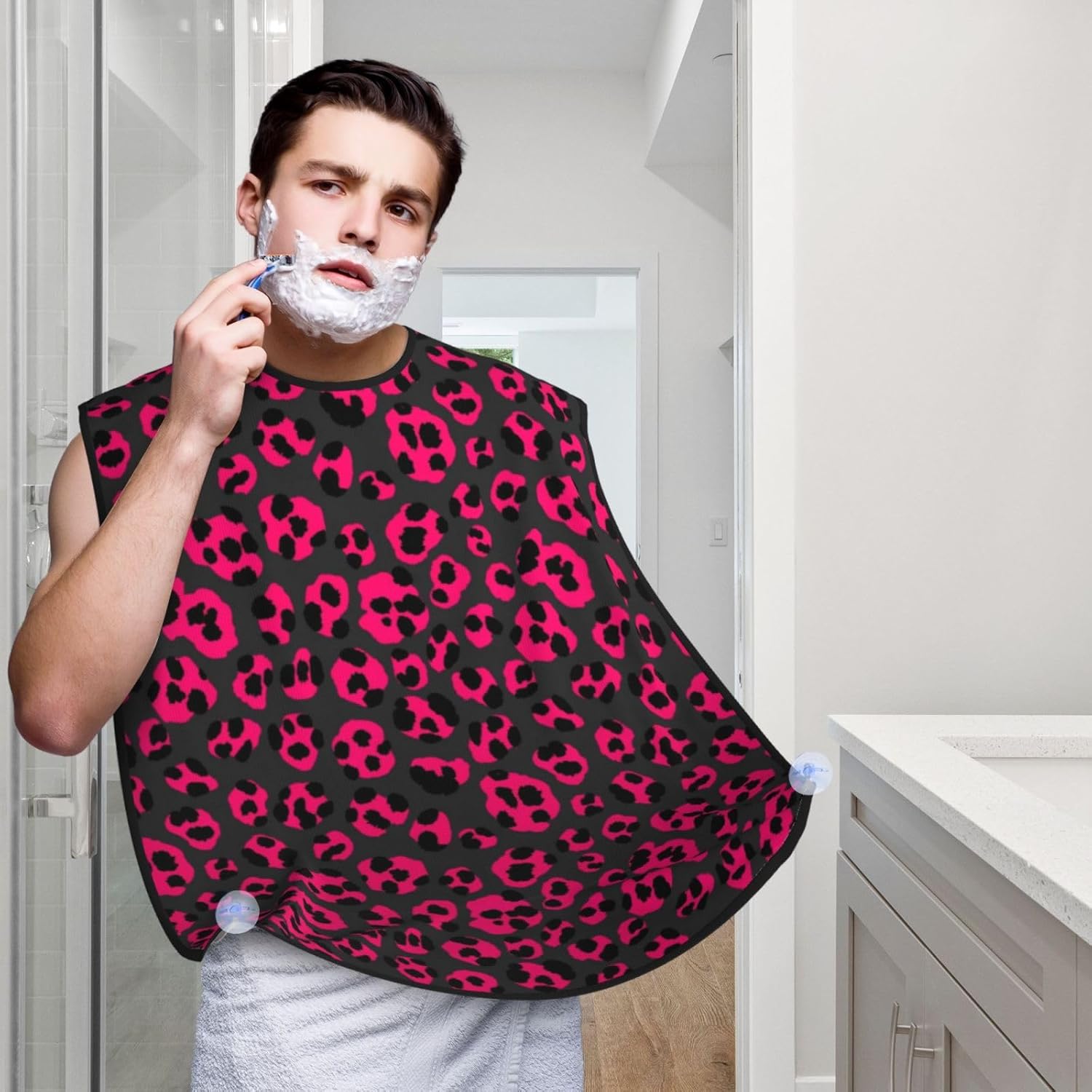 Waterproof Beard Grooming Bib, Luxury Pink Dark Gray Leopard Cheetah Print Shave Bib, Non-Stick Hair Catcher for Shaving Trimming, Apron Essential for Men Dad