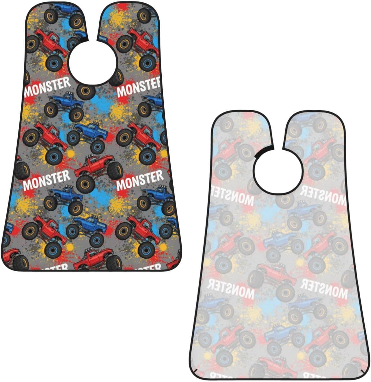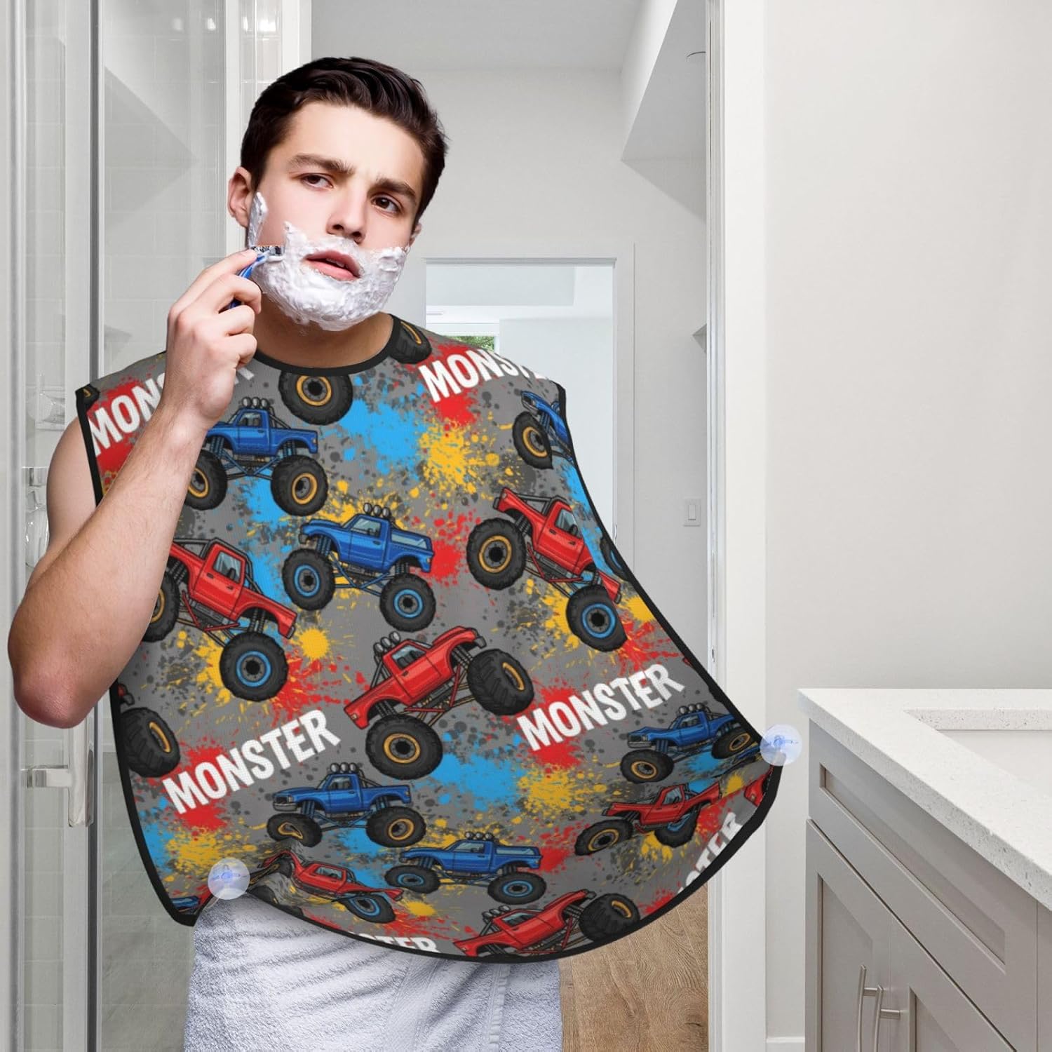 Beard Shaving Cape with Suction Cups, Grunge Monster Truck Car Art Shave Bib, Non-Stick Waterproof Hair Catcher, Grooming Bib for Men Husband