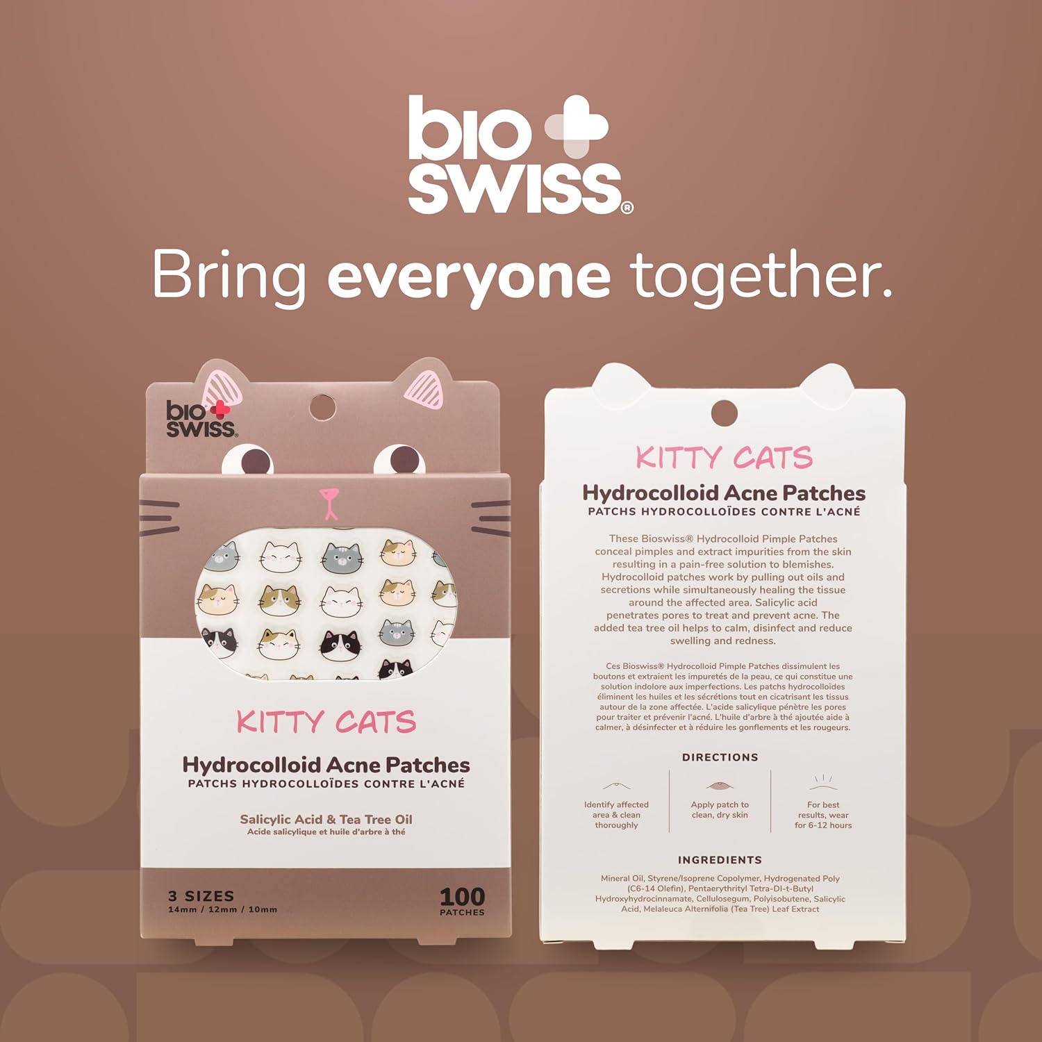 BioSwiss Pimple Patches, Kitty Cats Patch for Zits and Blemishes, Hydrocolloid Spot Stickers for Face and Skin, 100 Count