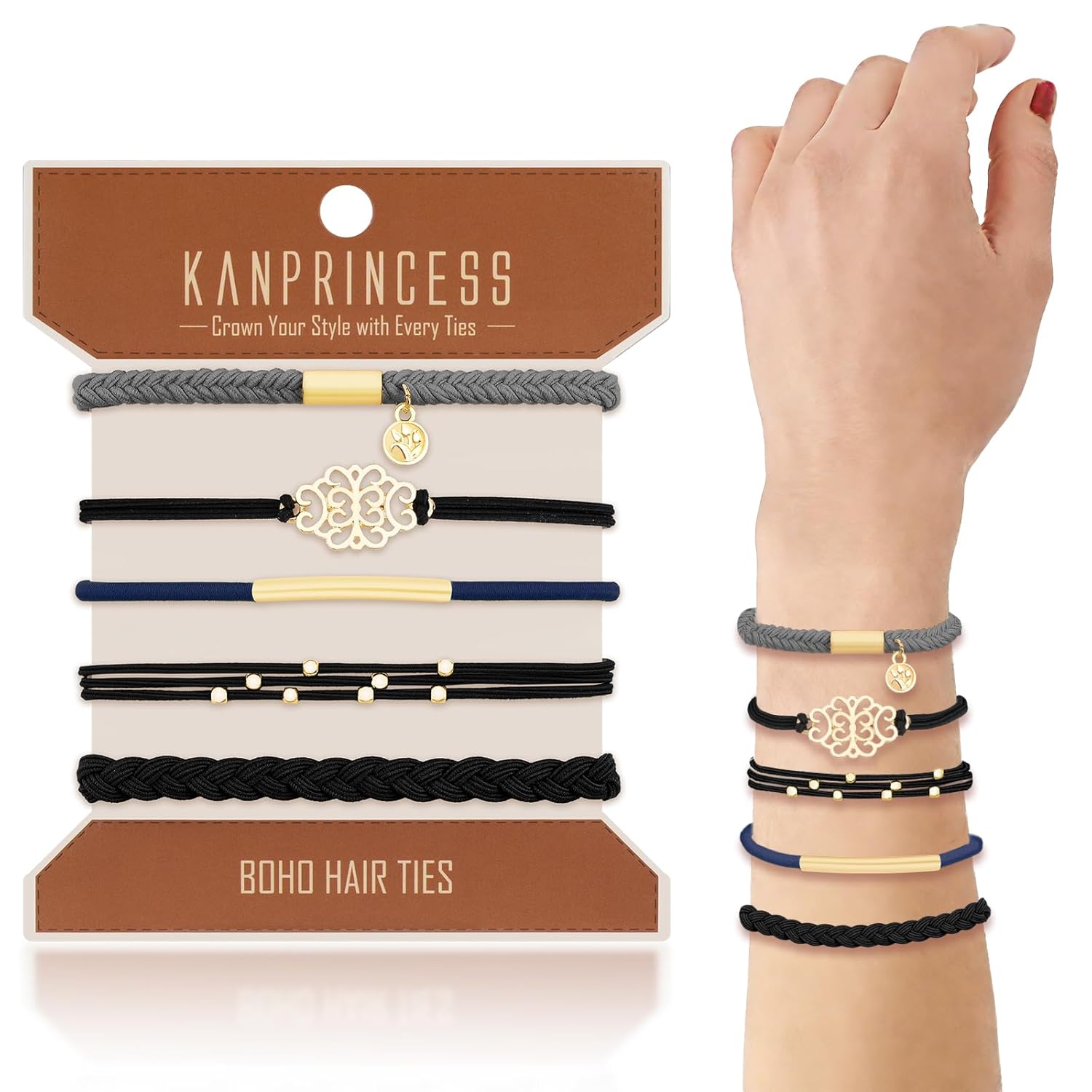 Hair Tie Bracelet, 5 Pcs Boho Hair Ties For Girls and Women, Elastic Hair Ties, Hair Bands For Ponytails, Ponytail Holder For Daily Life, Sport, Cooking, Working (Set 15)