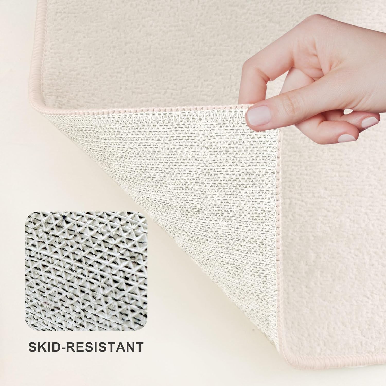 - Low Profile & Flat: Thin bathroom rug fit under door. No shedding, no pilling and no fading will happen. It can be laundry room mat, kitchen mat, pet feeding mat, desk mat, in front of sink mat, rv bath mat etc.
