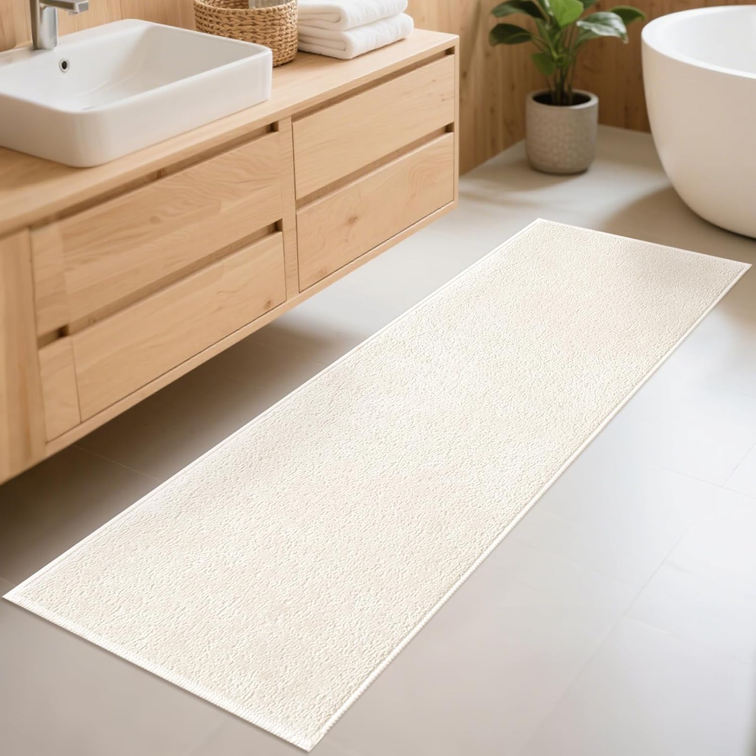 Bathroom Runner Rugs, Thin Absorbent Non-Slip Bath Mat, Quick Dry Low Pile Mats for Bathroom Floor Front of Bathtub,Shower Room,Sink,20"×47",White
