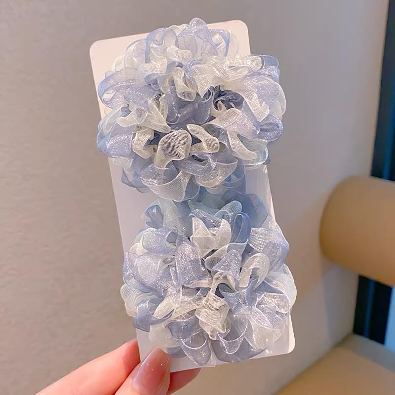 Lemeilleur 10 PCs (5 Pairs) Multicolor Cute Gauzy Elastic Hair Scrunchies for Buns Hair Ties Ponytail holders Band for Girls Kids Cheerleaders Hair Accessories