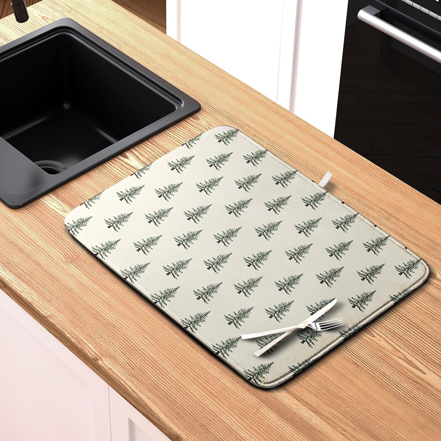 - Easy Storage & Care: Machine washable or hand washable. Machine wash with cold water in gentle cycle. Do not bleach, tumble dry low. The Christmas tree dish drying pads for kitchen counter is designed to be durable and long-lasting. Includes a sewn in hang tab to hang up mat to dry fast