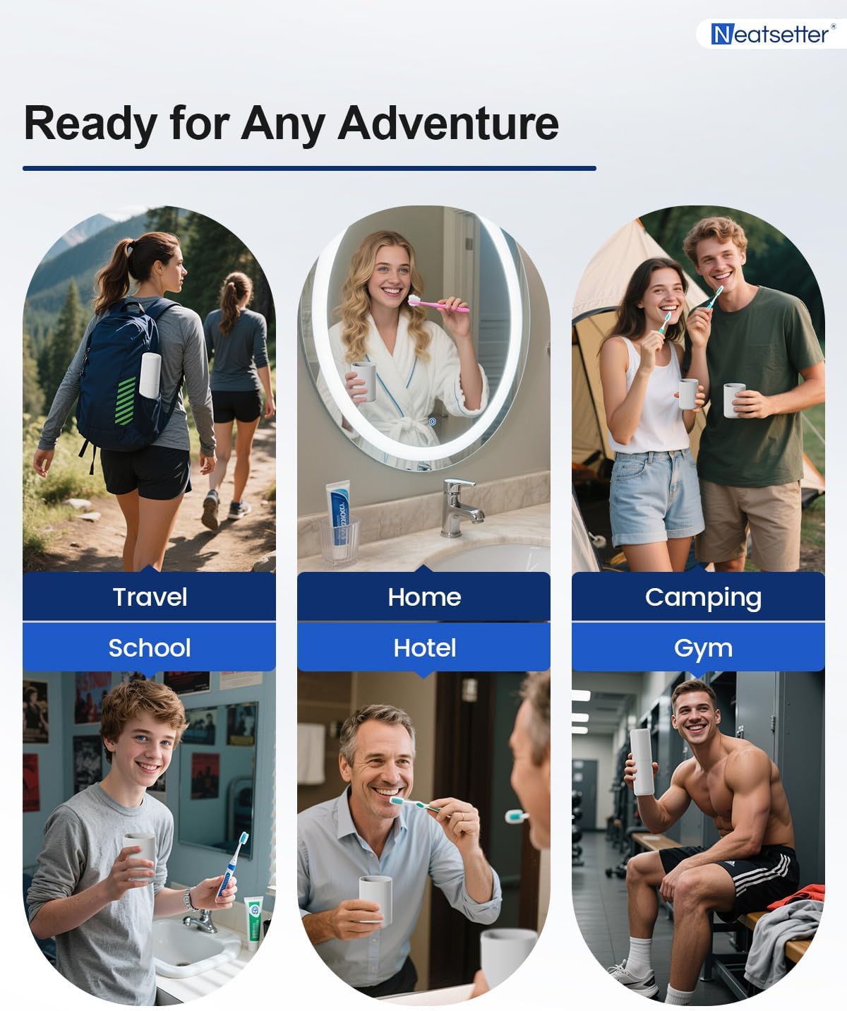 - Ready for Any Adventure – Ideal for travel, camping, gym sessions, yoga studios, school, or hotel stays. This toothbrush travel container ensures your essentials stay secure and portable, no matter the destination