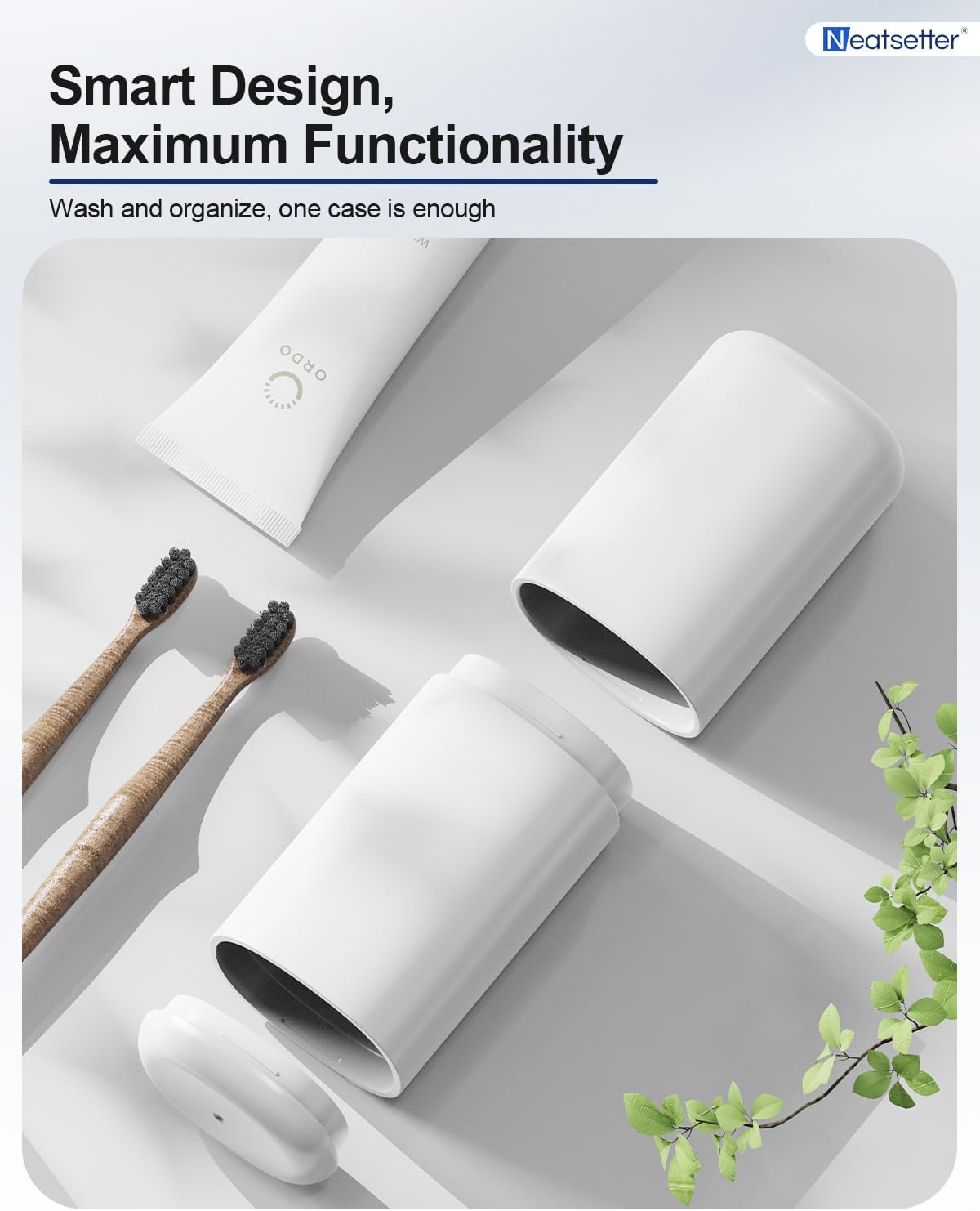 - Smart Design, Maximum Functionality – Features a 3-piece detachable design with a built-in drainage lid to keep items dry and hygienic. The top cover doubles as a convenient rinse cup—making it the ultimate toothbrush case for traveling with versatility