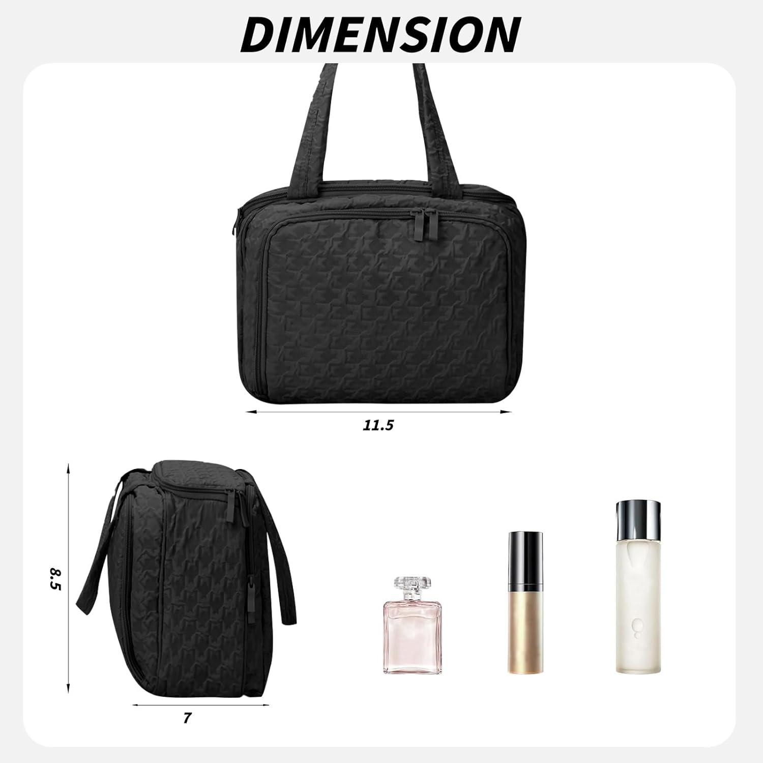 SUNRISING Travel Toiletry Bag Makeup Bag for Women, Large Water-Resistant Travel Cosmetic Make Up Bag with Handle,Travel Toiletry Bags for Compartments Accessories Essentials-Black
